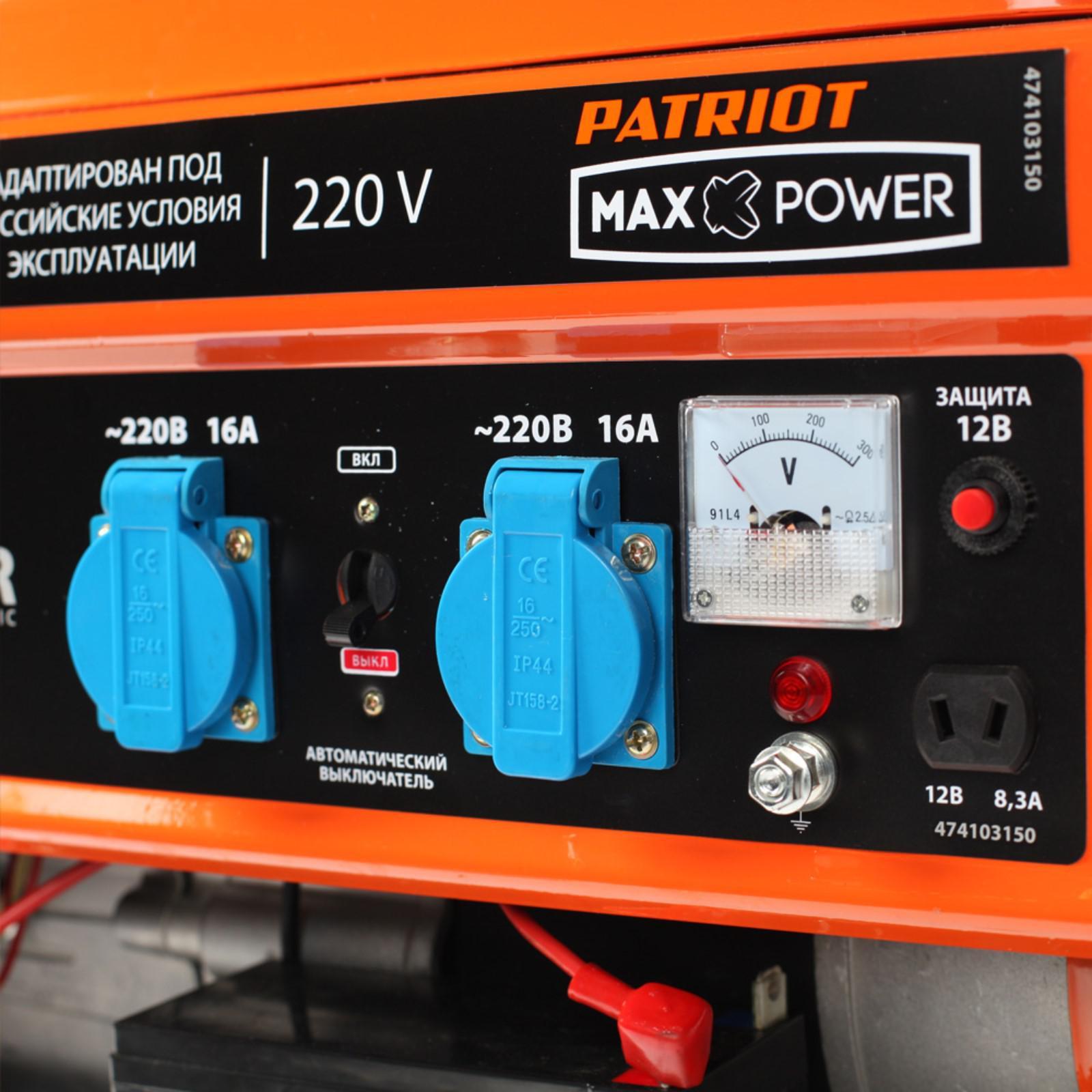 Генератор бензиновый PATRIOT MaxPowerSRGE3500E, 2.8 кВт, 2х220/12 В, ручной/электро старт