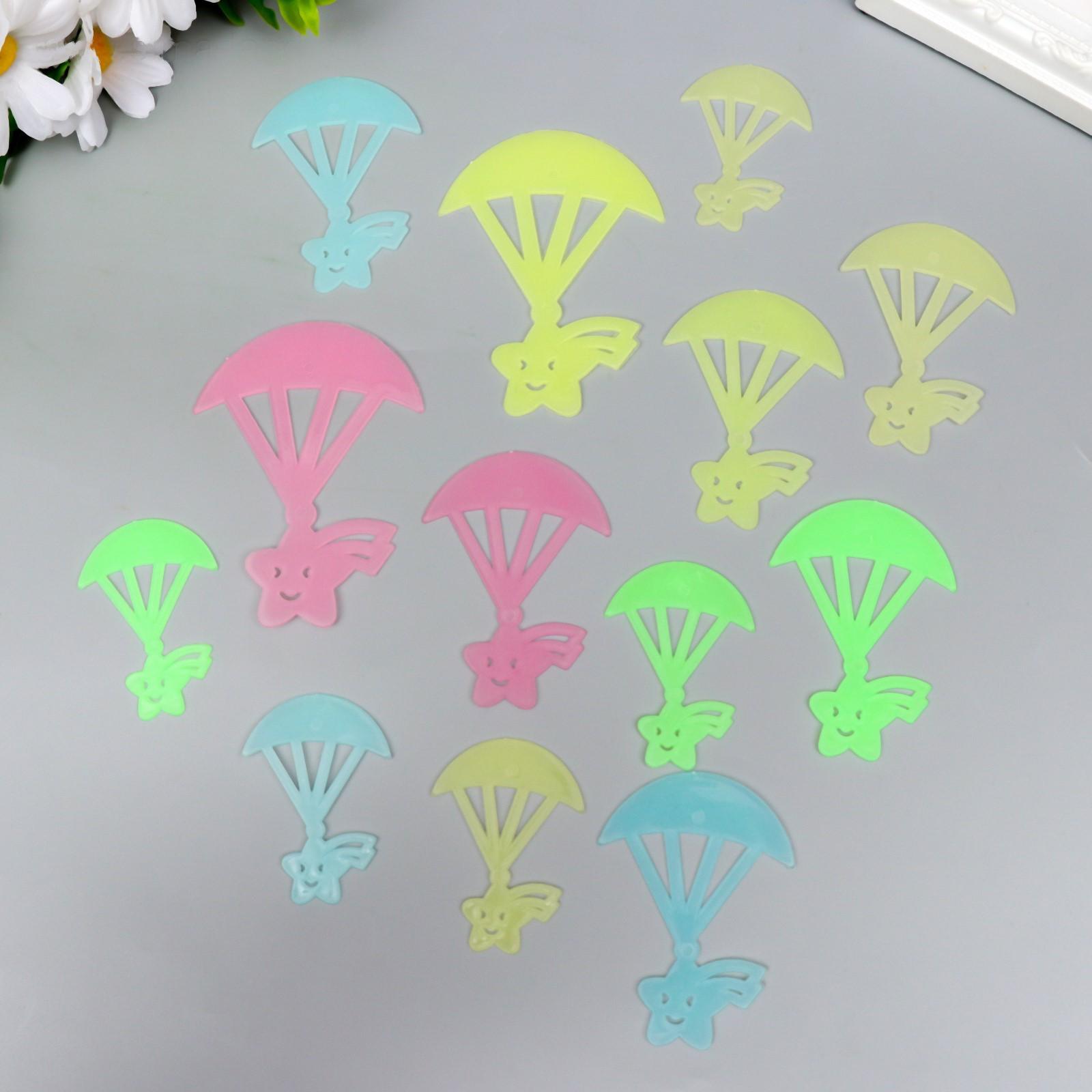 Наклейка фосфорная пластик "Звёзды с парашютом" набор 12 шт МИКС 17х12 см