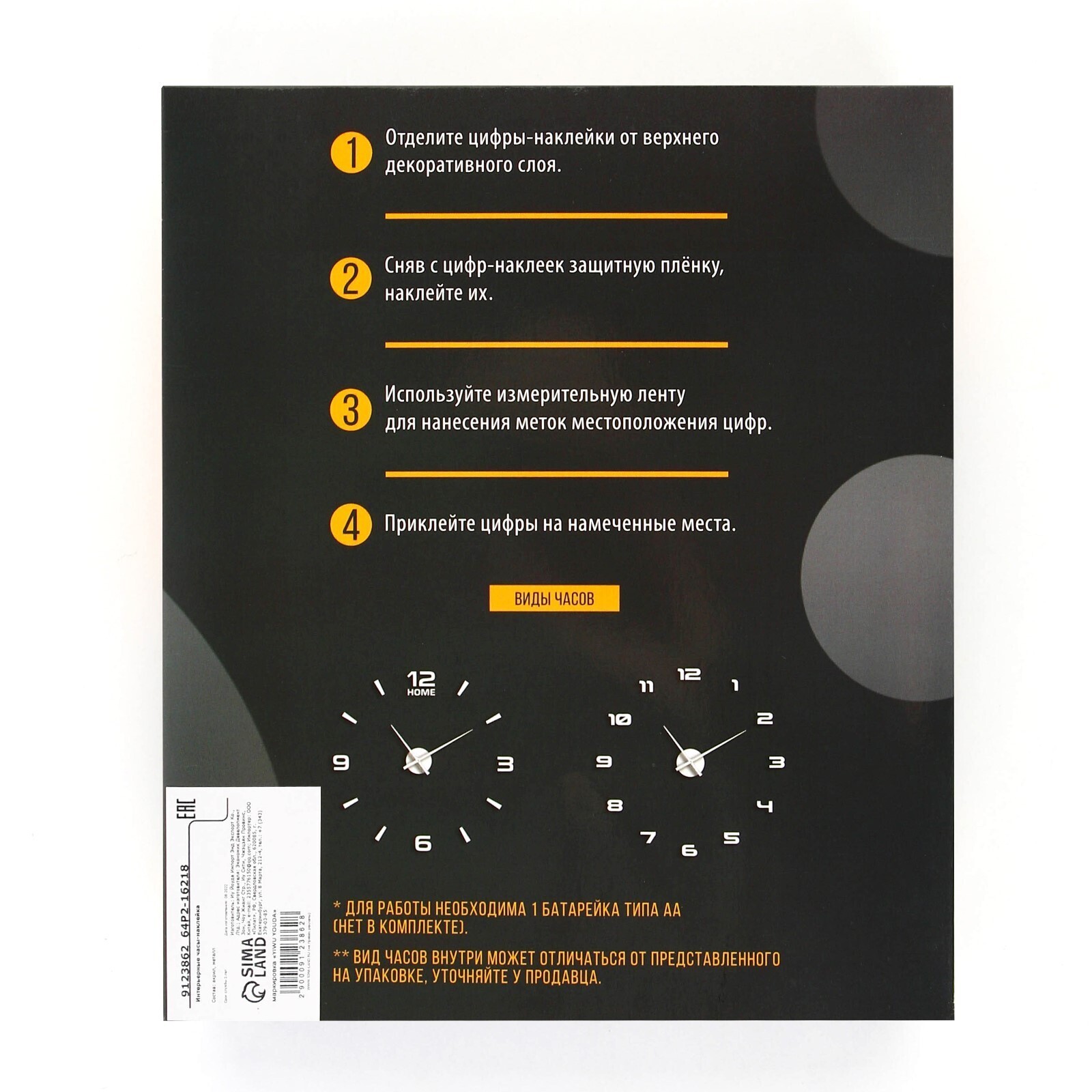 Интерьерные часы-наклейка Home, плавный ход, d = 60 см, мод. AM-12