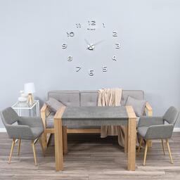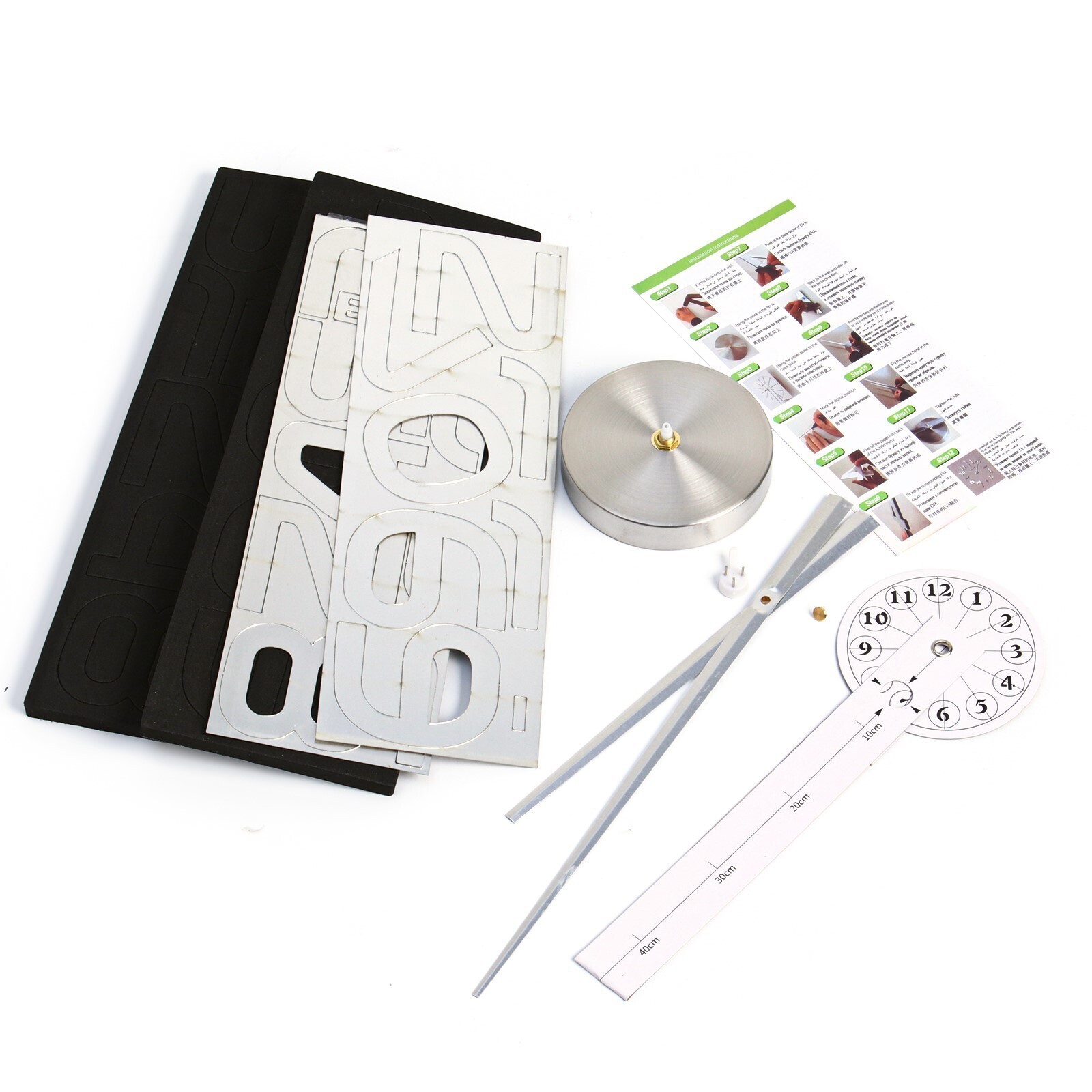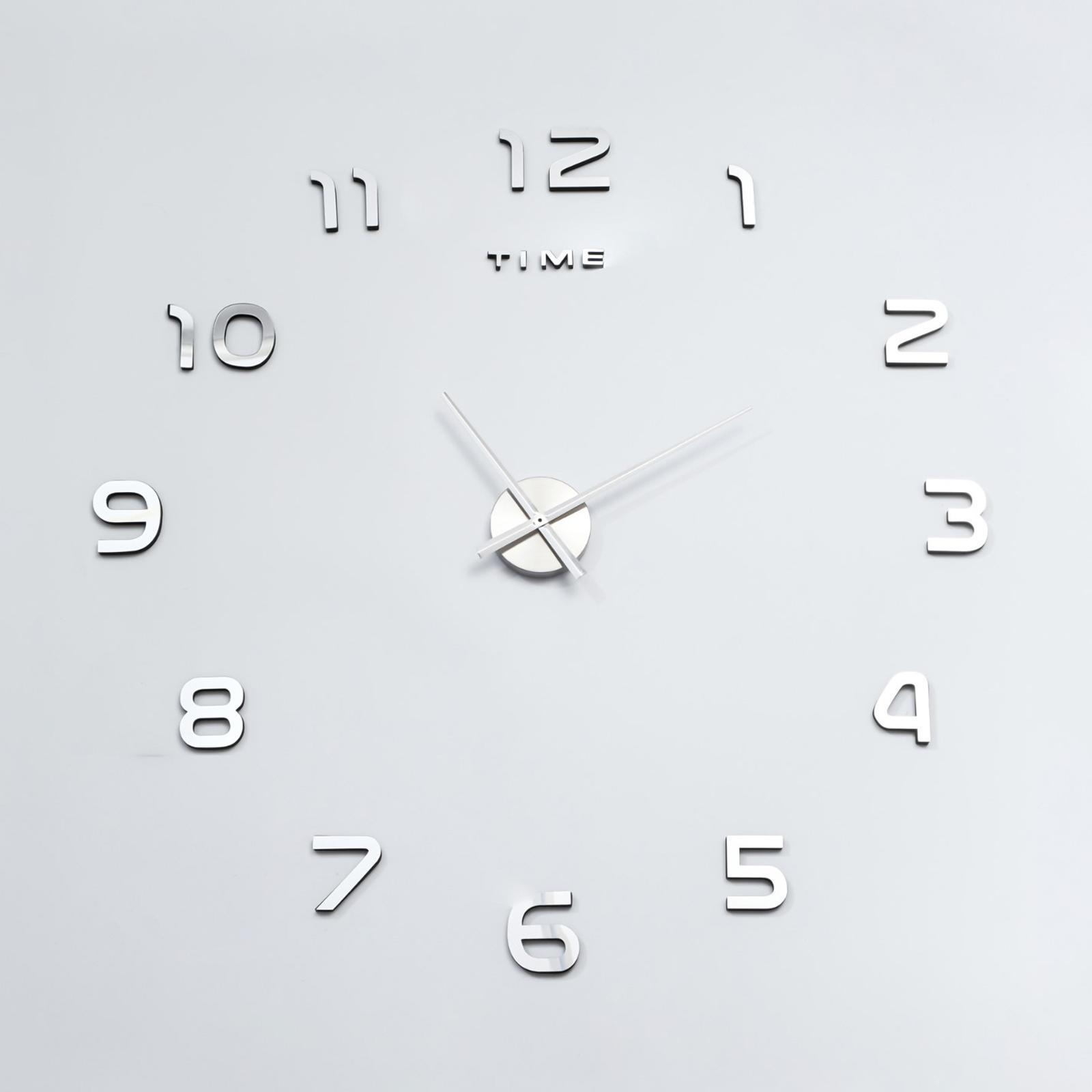 Оригинальные DIY 3D часы-наклейка диаметром от 70 см до 100 см серебряного цвета. Клеевой слой позволяет разместить часы на различные поверхности: окрашенные, деревянные, пластиковые, керамические или металлические, а также любые виды обоев. В комплекте к часам идет шаблон для разметки. С его помощью вы сами выбираете желаемый диаметр часов и делаете отметки на стене, куда будут клеиться элементы.