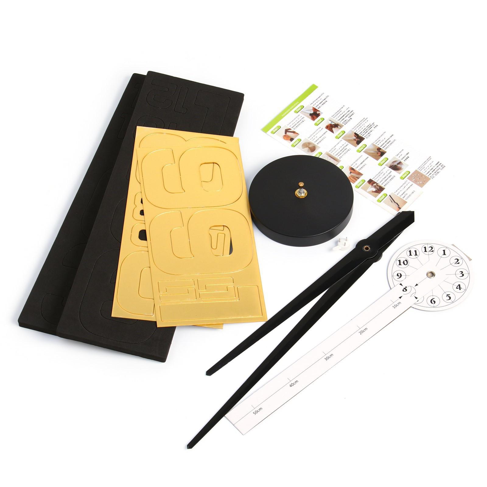 Создавайте часы в собственном стиле, проявляйте изобретательность и креативность. Не обязательно располагать числа по кругу — придайте аксессуару необычную форму, поменяйте диаметр циферблата, используйте не все элементы. Комплектующие легко клеятся на стену и без труда снимаются.