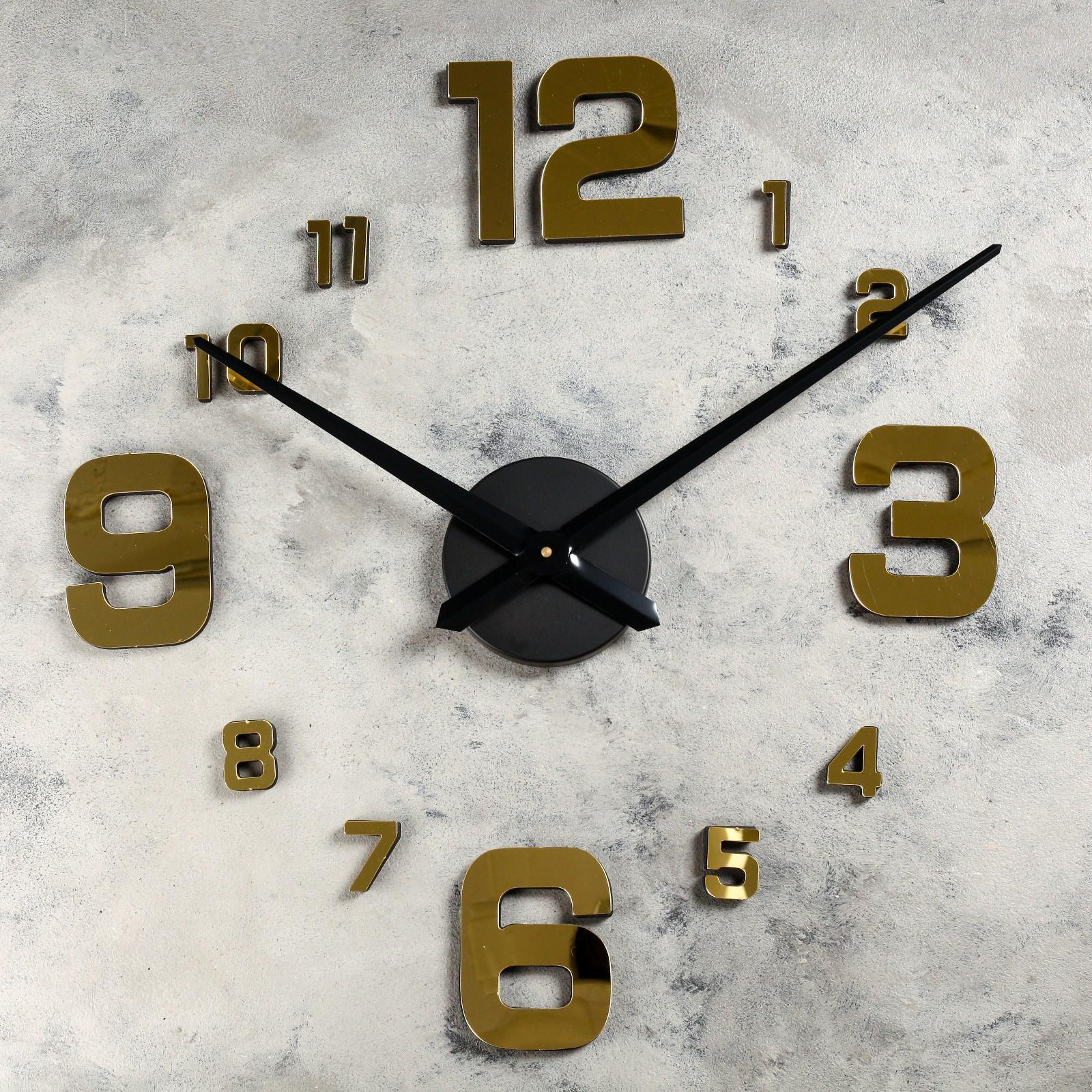 Часы-наклейка, серия: DIY, "Паоли", плавный ход, d-120 см, 1 ААА, золотистые