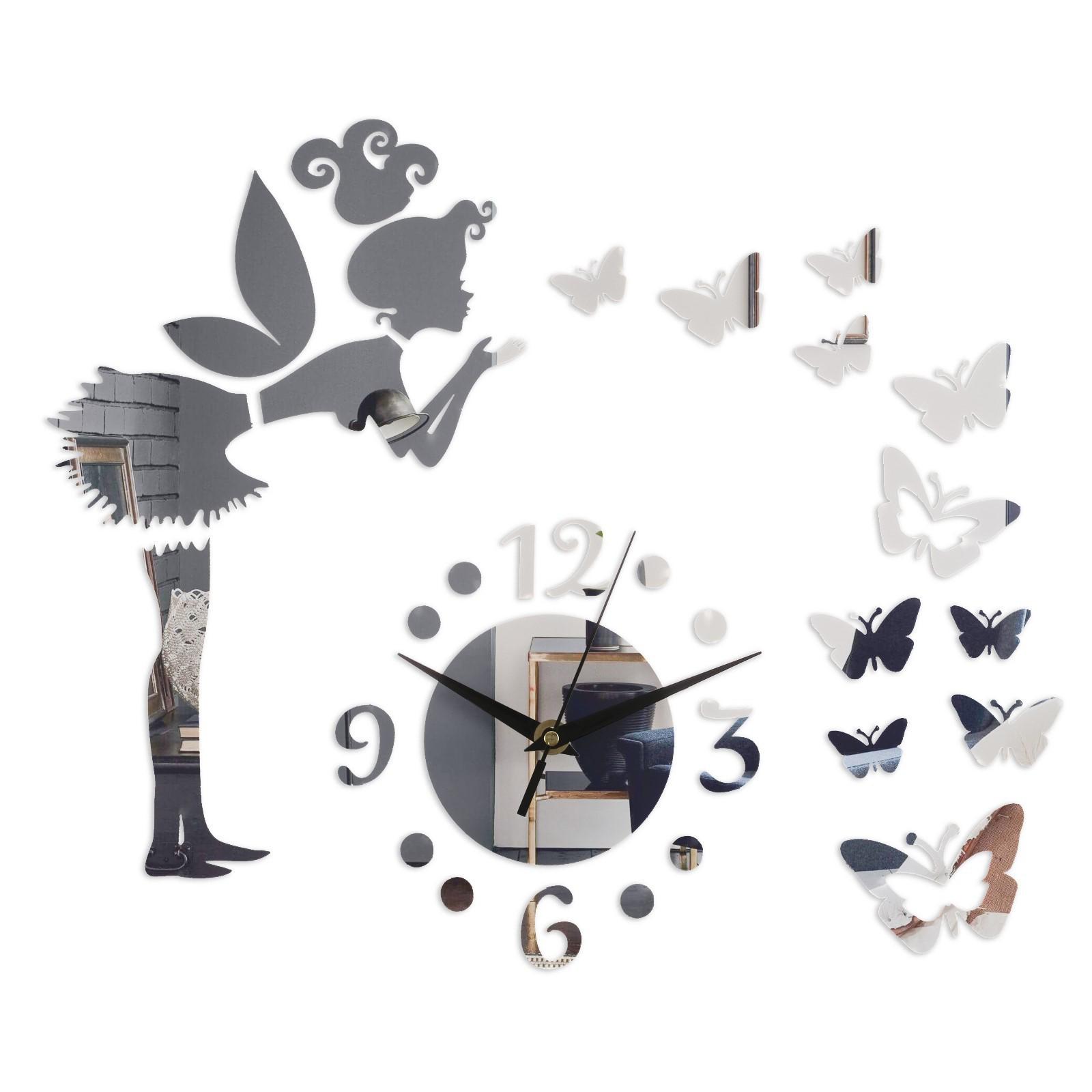 Часы-наклейка, серия: DIY, "Фея с бабочками", 60 х 60 см, 1 ААА, серебро