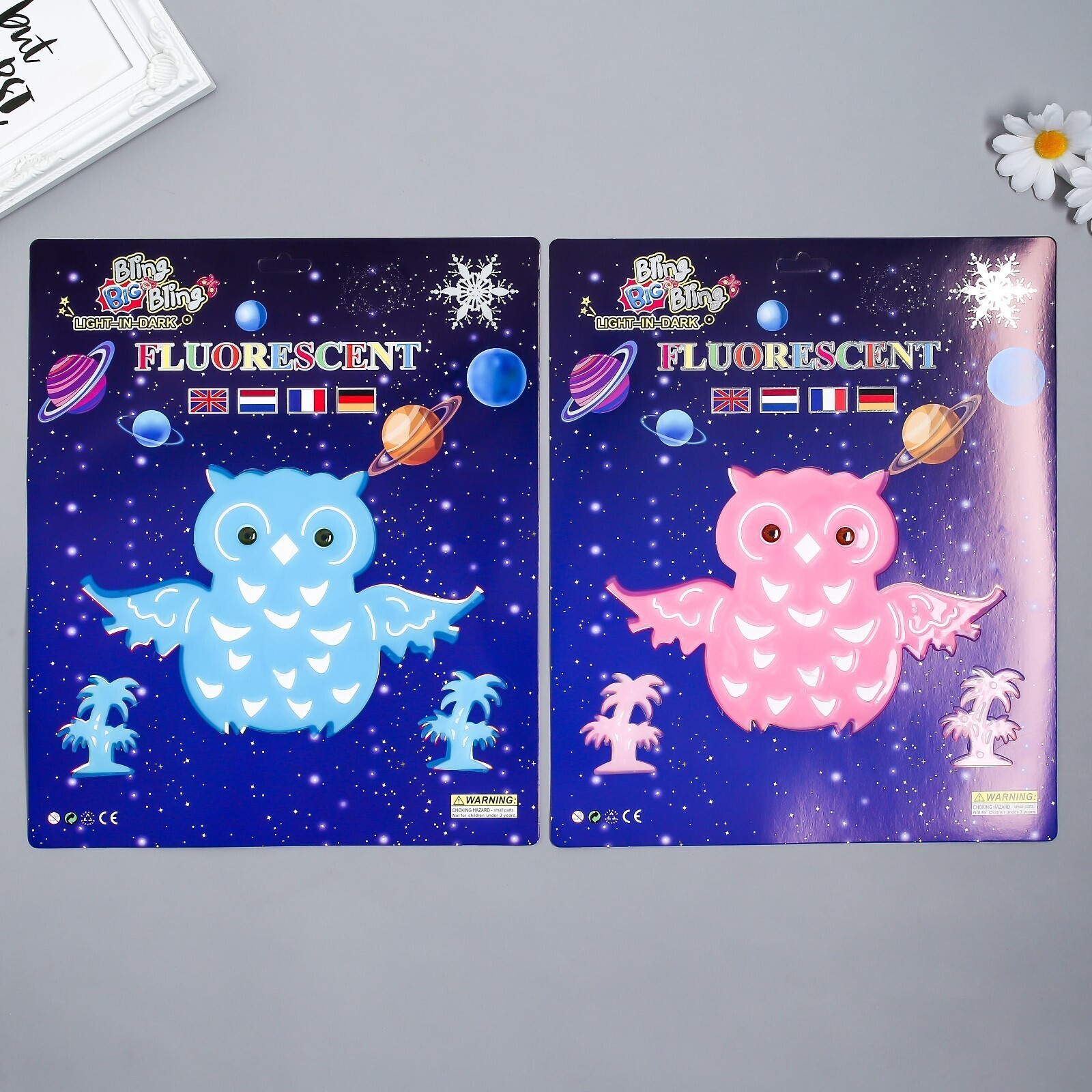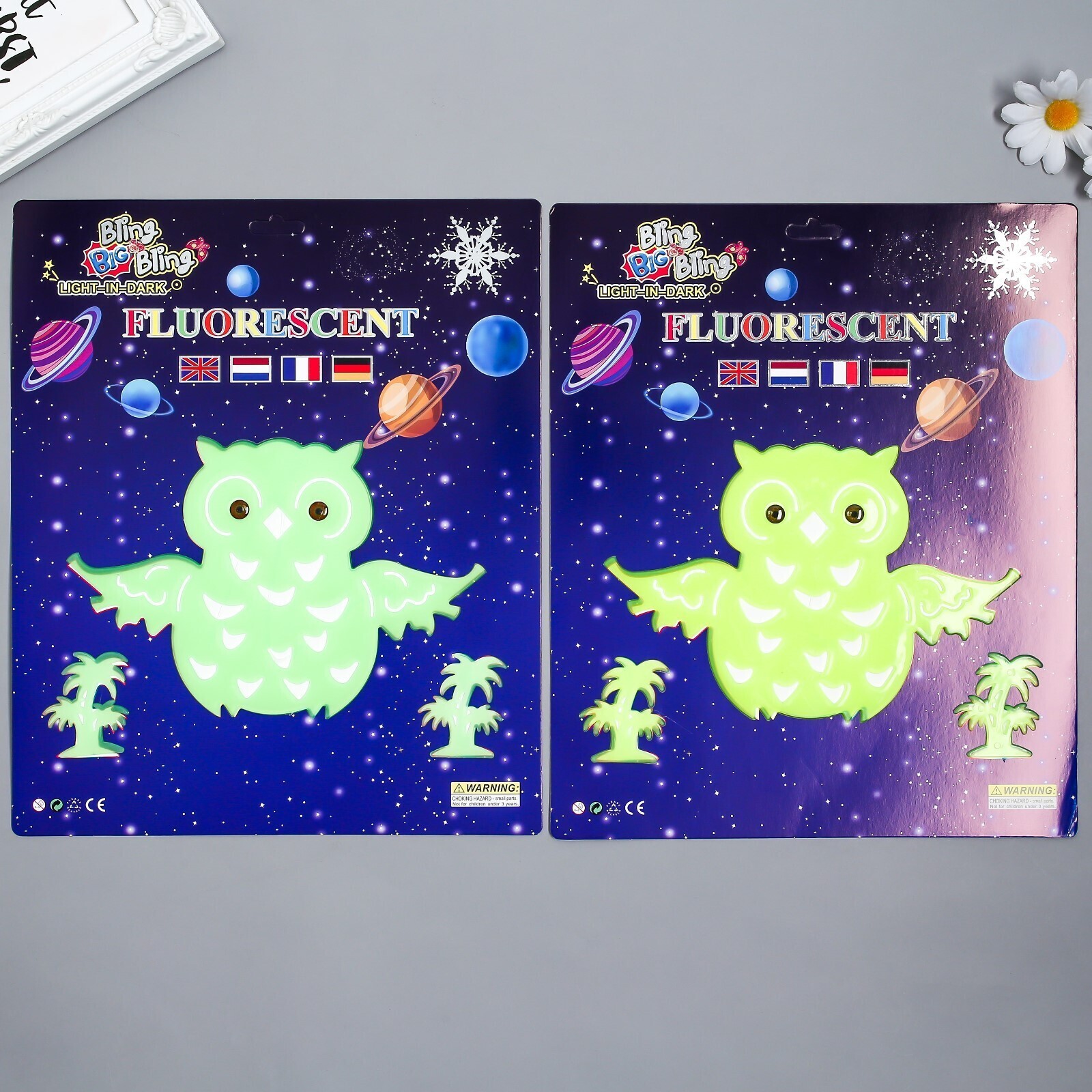 Наклейка фосфорная "Сова" с клеевыми подушечками набор 3 шт МИКС 29,5х25 см
