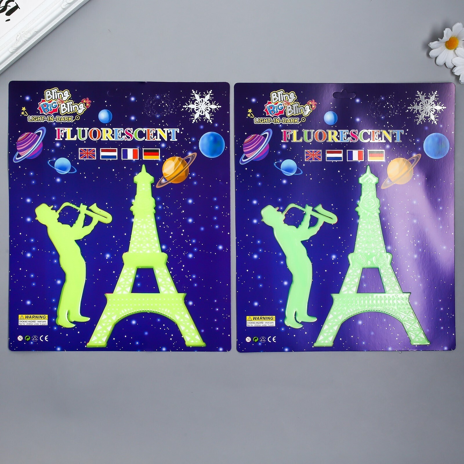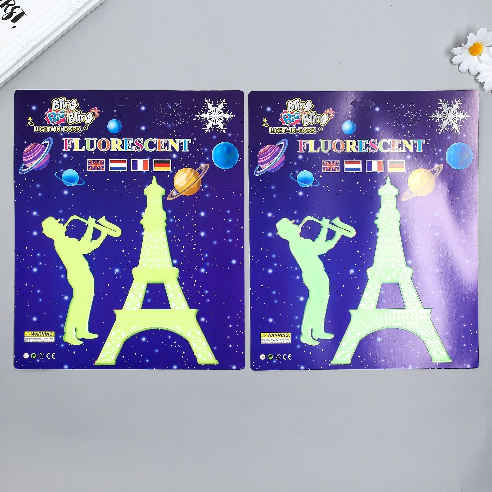 Наклейка фосфорная "Эйфелева башня и саксофонист" с клеев.подуш. набор 2 шт МИКС 29,5х25 см 788219