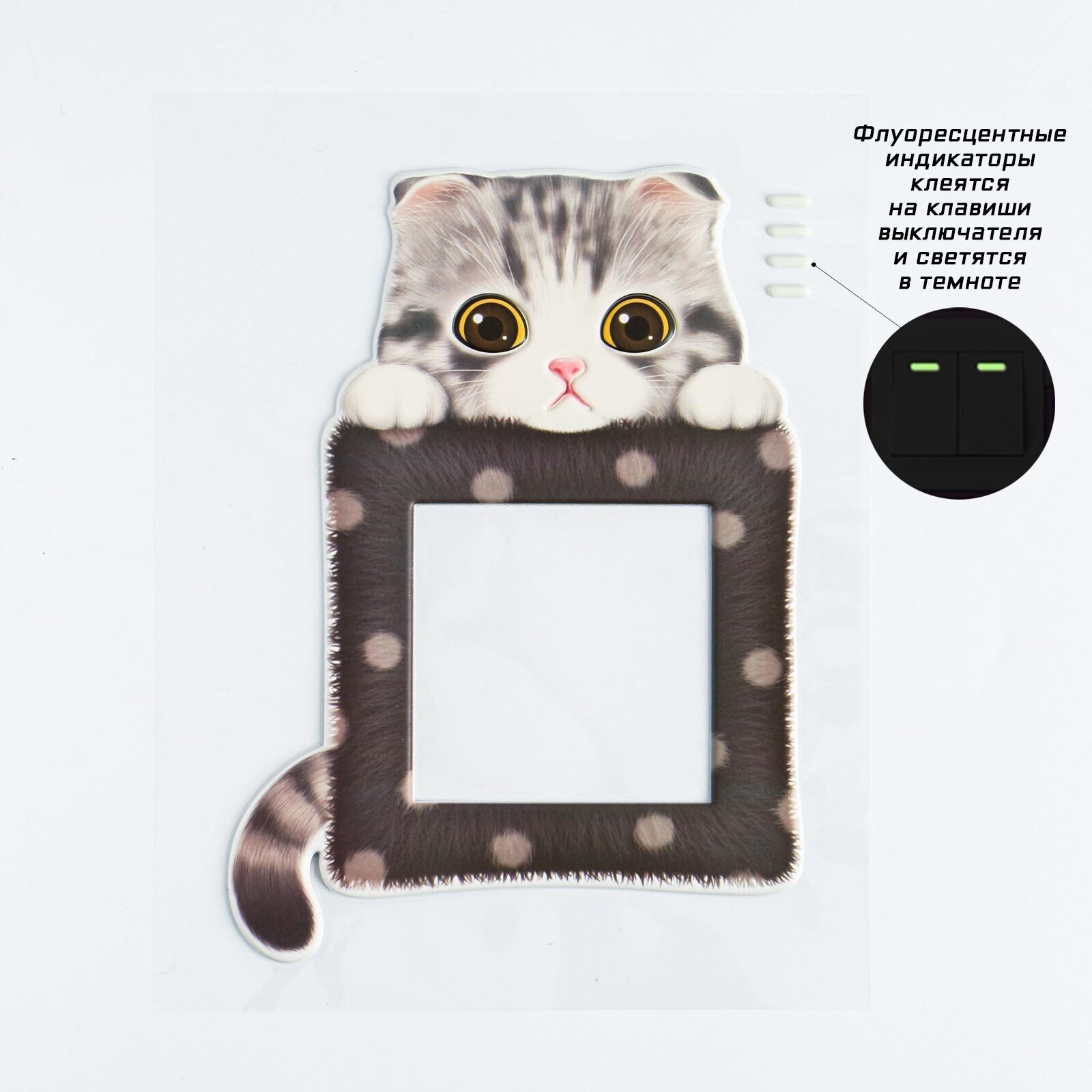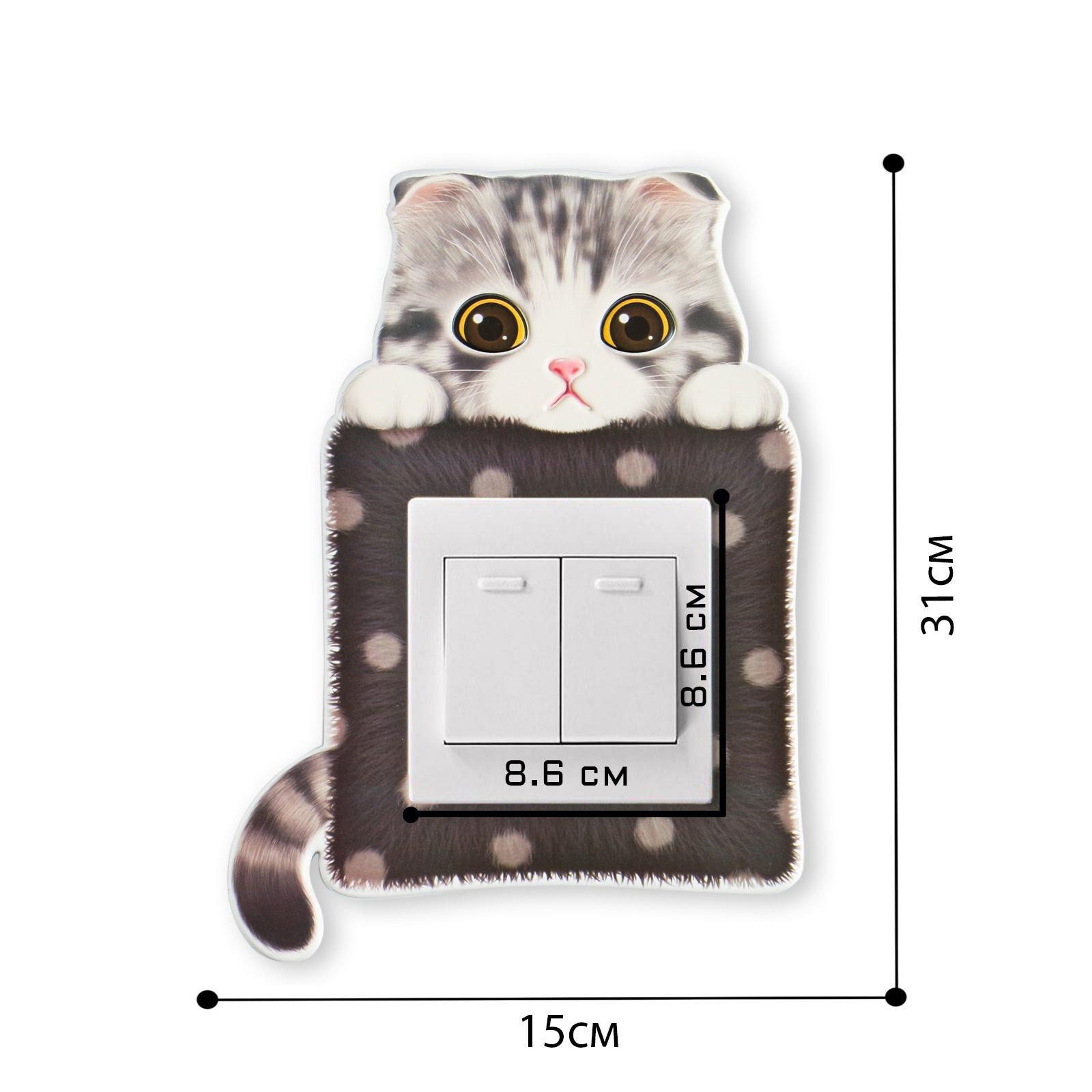Наклейка на выключатель "Милый котик", со светящимися элементами, 15 х 31 см