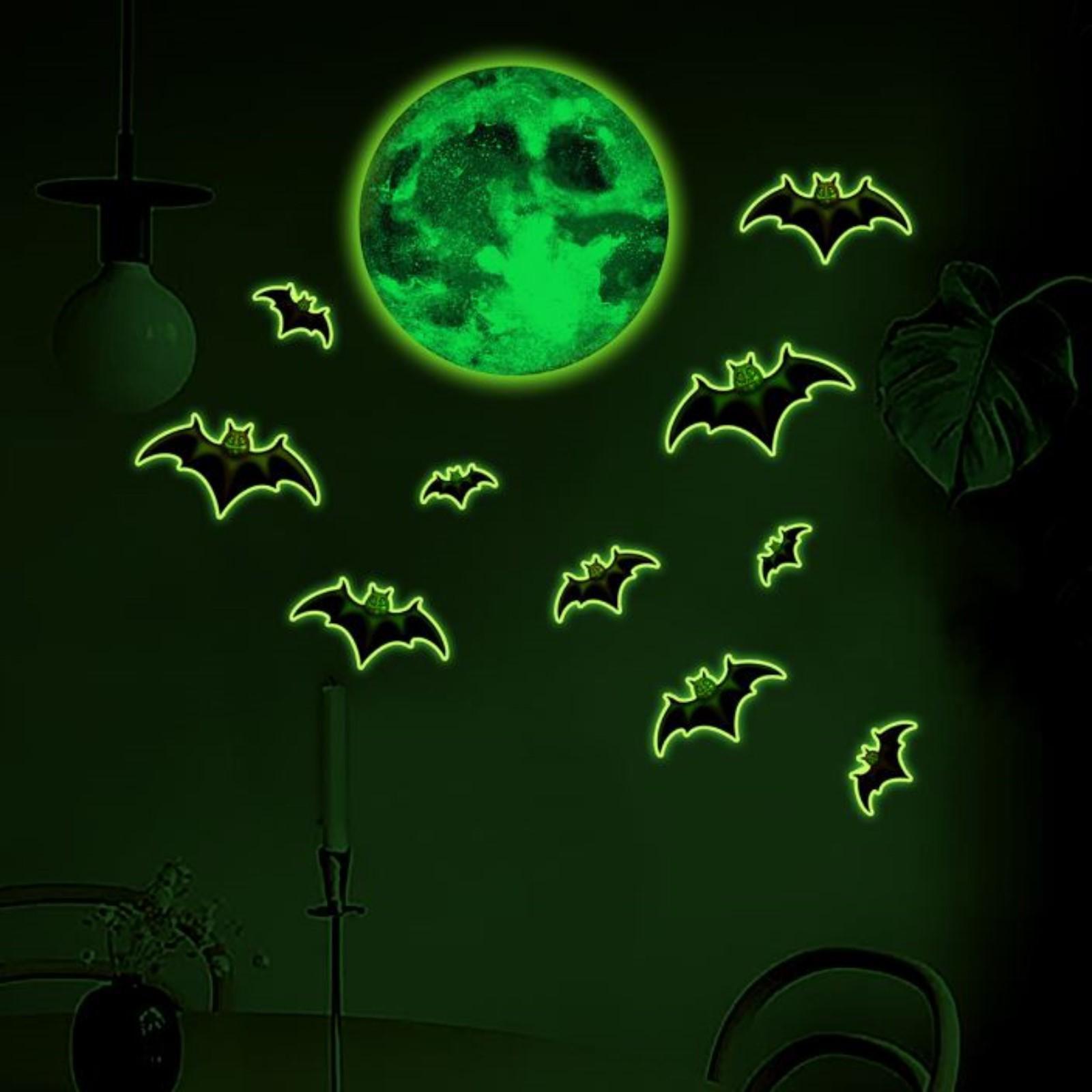Наклейка пластик интерьерная фосфорная "Полнолуние и летучие мыши" 30х24 см