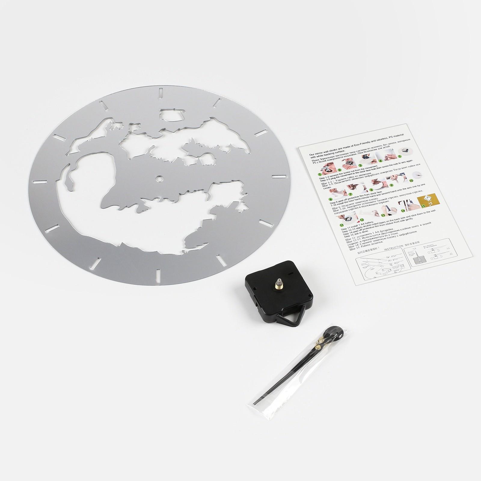 Часы-наклейка, серия: DIY, "Земля", 1 ААА, серебро
