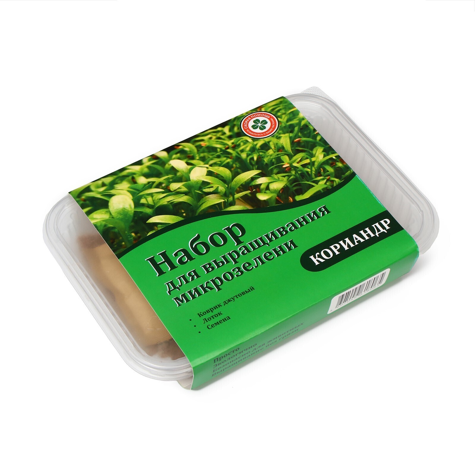 Набор для выращивания микрозелени: семена Кориандр, лоток, джутовый коврик