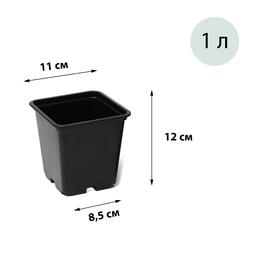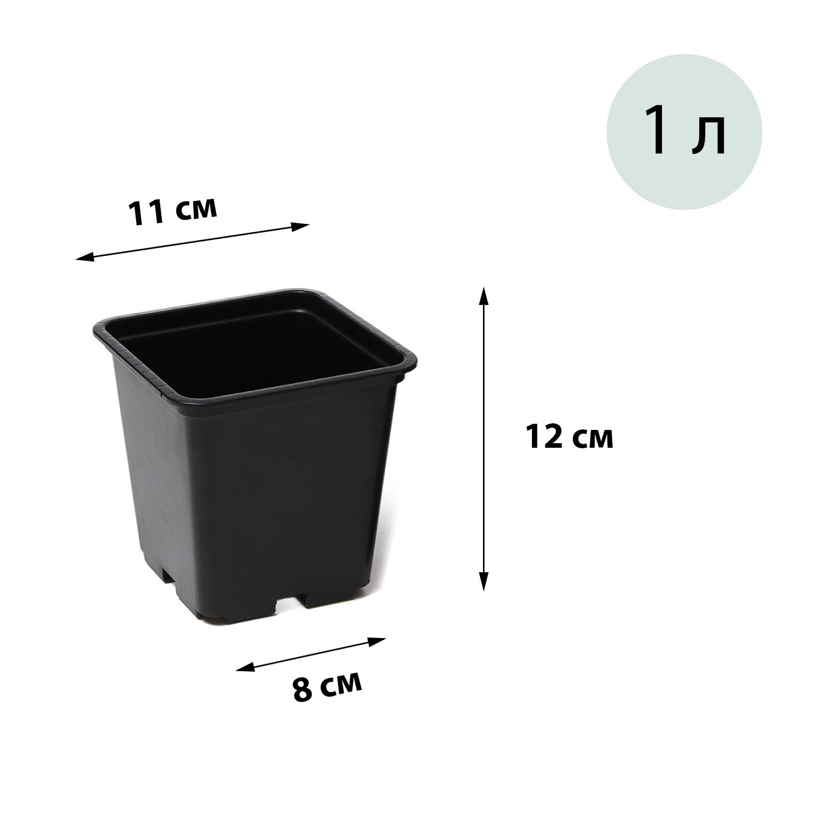 Горшок для рассады, 1 л, 11 × 11 × 11 см, чёрный