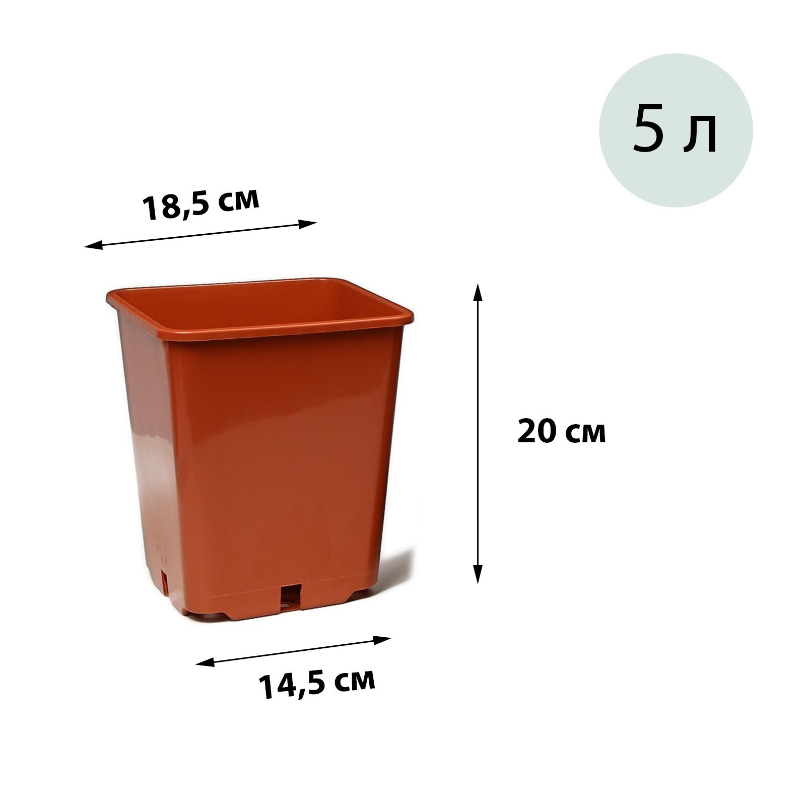 Горшок для рассады, 5 л, 18 × 18 × 23 см, терракотовый, Greengo