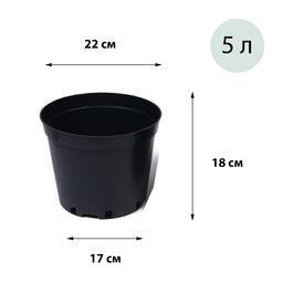 Горшок для рассады, 5 л, 22 × 22 × 18 см, чёрный, Greengo