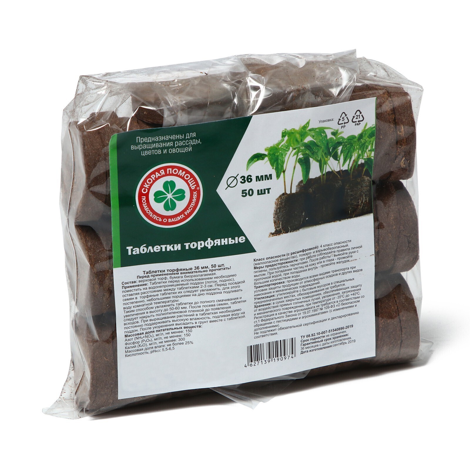 Таблетки торфяные, d = 3.6 см, с оболочкой, набор 50 шт.