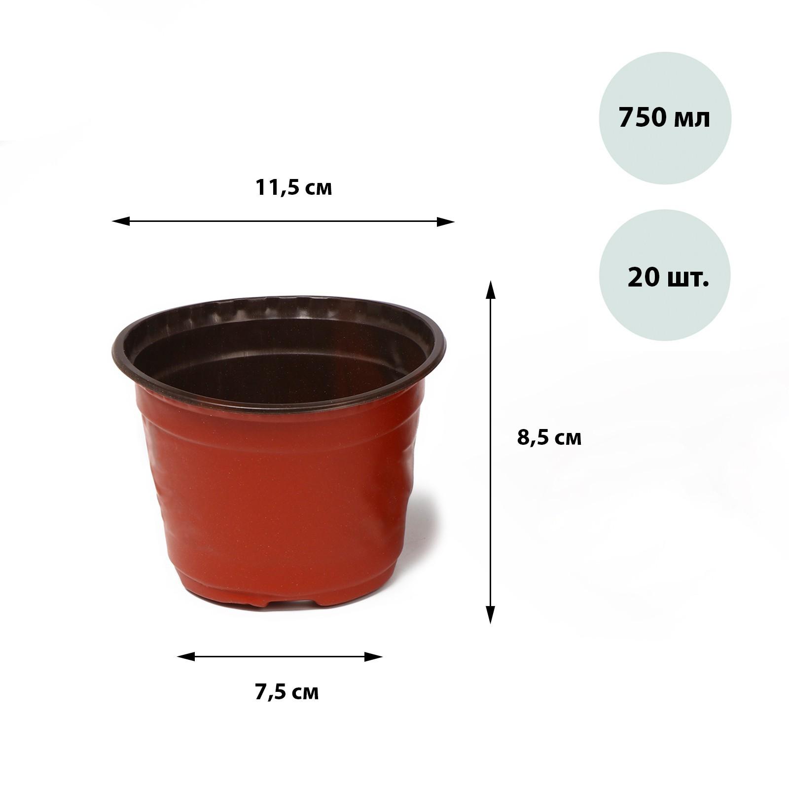 Горшок для рассады, 750 мл, 11 × 11 × 9 см, терракотовый, Greengo