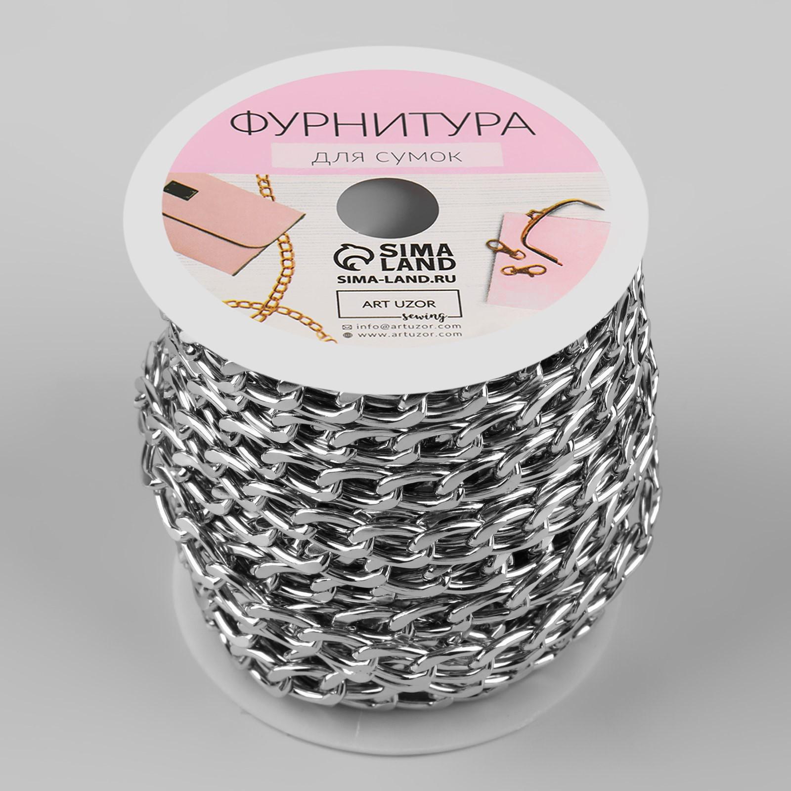 Цепочка для сумки, плоская, алюминиевая, 7,8 × 11,1 мм, 10 ± 0,5 м, цвет серебряный