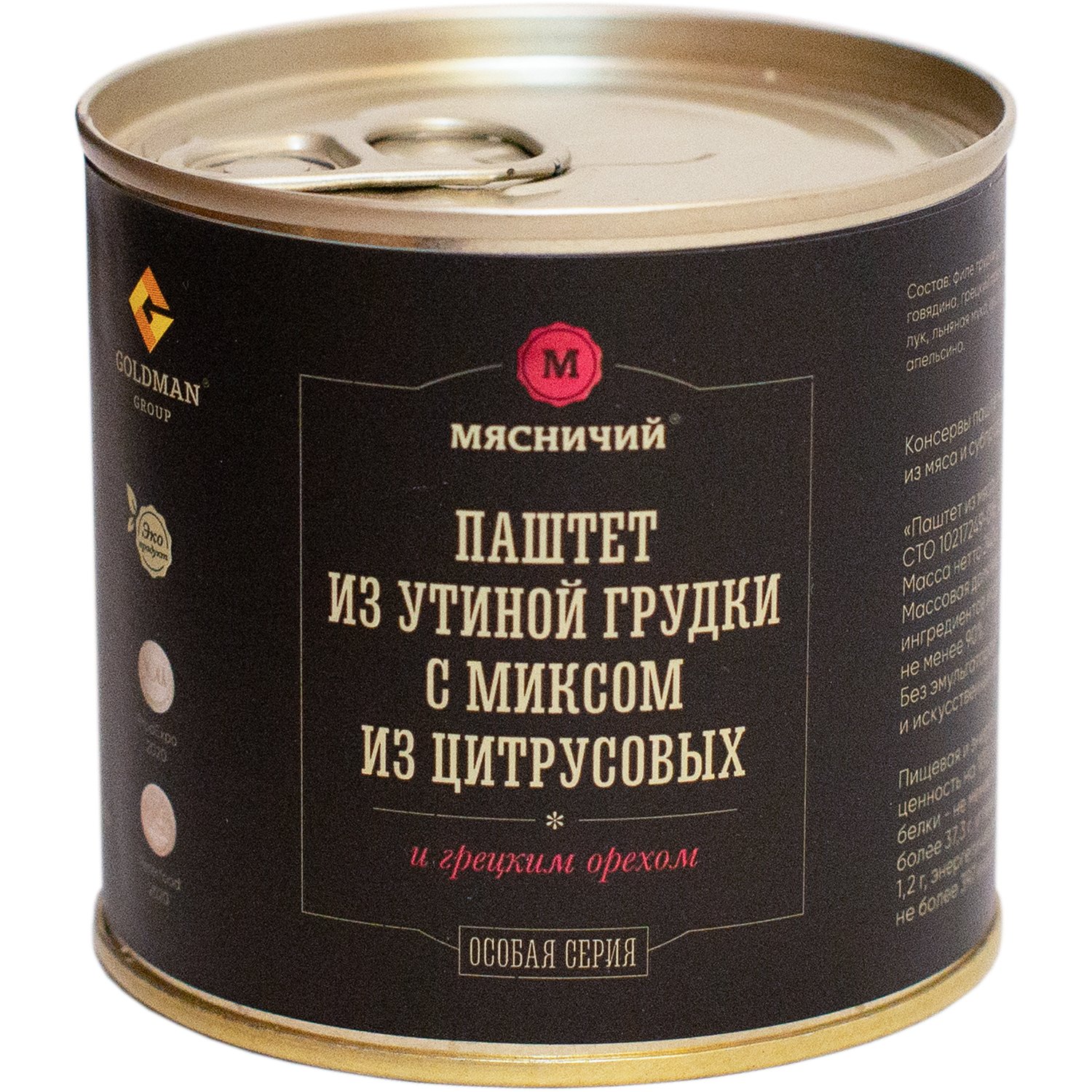 Мясные консервы Мясничий Паштет из Утиной грудки с миксом из цитрусовых и грецким орехом 240г 720