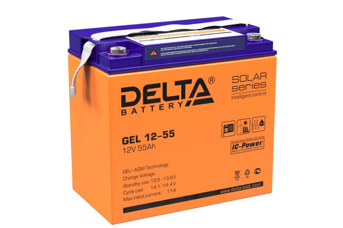 Свинцово-кислотный аккумулятор Delta GEL 12-55 — универсален, успешно эксплуатируется как в буферном, так и в циклическом режимах. Клапанно-регулируемый (VRLA), выполнен по технологии GEL — электролит абсорбирован в микропористое стекловолокно и в свободном состоянии внутри батареи не присутствует, его утечка невозможна. Протекание реакций рекомбинации газов с эффективностью 99% позволяет не беспокоиться о техническом обслуживании аккумулятора, доливать воду не надо на протяжении всего срока службы.