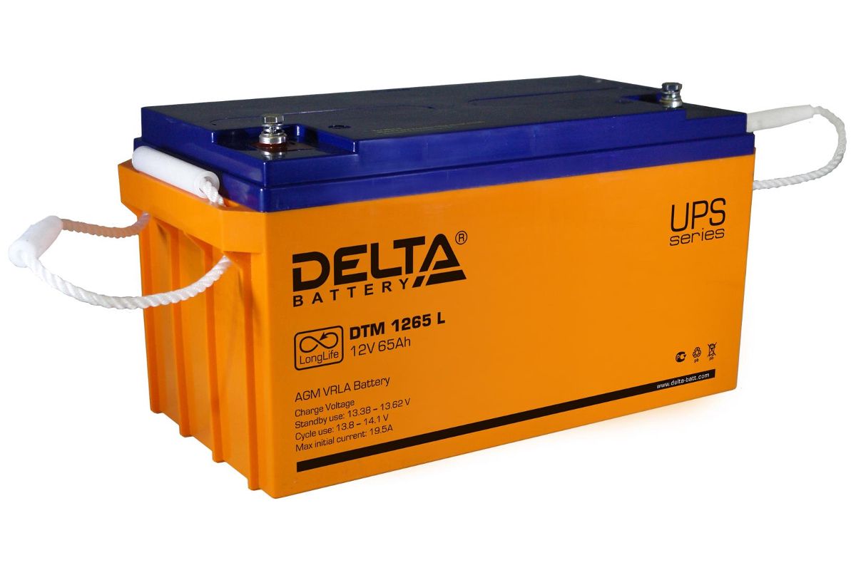 Аккумуляторная батарея 12 В, 65 Ач. Типоразмер 350*167*179. Свинцово-кислотные аккумуляторы DELTA серии DTM L являются герметизированными, необслуживаемыми с системой рекомбинации газов (VRLA). Изготавливаются по технологии AGM. Серия DTM L относится к линейке Long Life со сроком службы до 12 лет. Благодаря высоким эксплуатационным характеристикам, рекомендованы для применения в различных системах бесперебойного питания, в том числе требовательных электрических приборов (импортных насосов и котлов систем отопления), аварийного энергоснабжения, прочих электрических устройствах.
