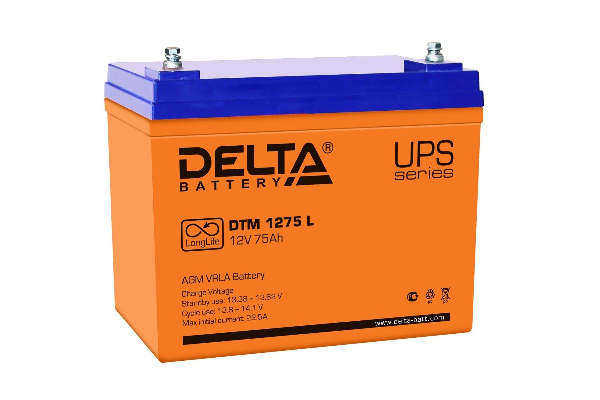 Аккумуляторная батарея 12 В, 75 Ач. Типоразмер 258*166*215. Свинцово-кислотные аккумуляторы DELTA серии DTM L являются герметизированными, необслуживаемыми с системой рекомбинации газов (VRLA). Изготавливаются по технологии AGM. Серия DTM L относится к линейке Long Life со сроком службы до 12 лет. Благодаря высоким эксплуатационным характеристикам, рекомендованы для применения в различных системах бесперебойного питания, в том числе требовательных электрических приборов (импортных насосов и котлов систем отопления), аварийного энергоснабжения, прочих электрических устройствах.