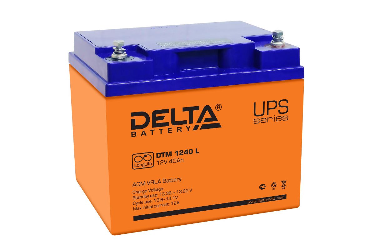 Аккумуляторная батарея 12 В, 40 Ач. Типоразмер 198*166*170. Свинцово-кислотные аккумуляторы DELTA серии DTM L являются герметизированными, необслуживаемыми с системой рекомбинации газов (VRLA). Изготавливаются по технологии AGM. Серия DTM L относится к линейке Long Life со сроком службы до 12 лет. Благодаря высоким эксплуатационным характеристикам, рекомендованы для применения в различных системах бесперебойного питания, в том числе требовательных электрических приборов (импортных насосов и котлов систем отопления), аварийного энергоснабжения, прочих электрических устройствах.