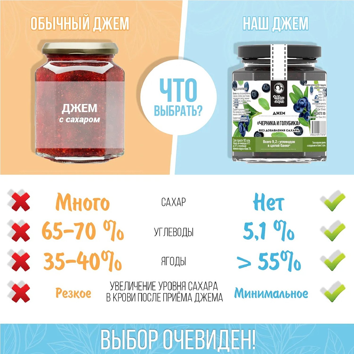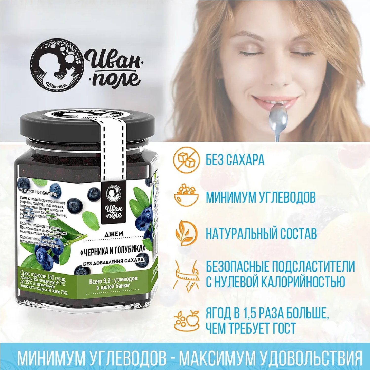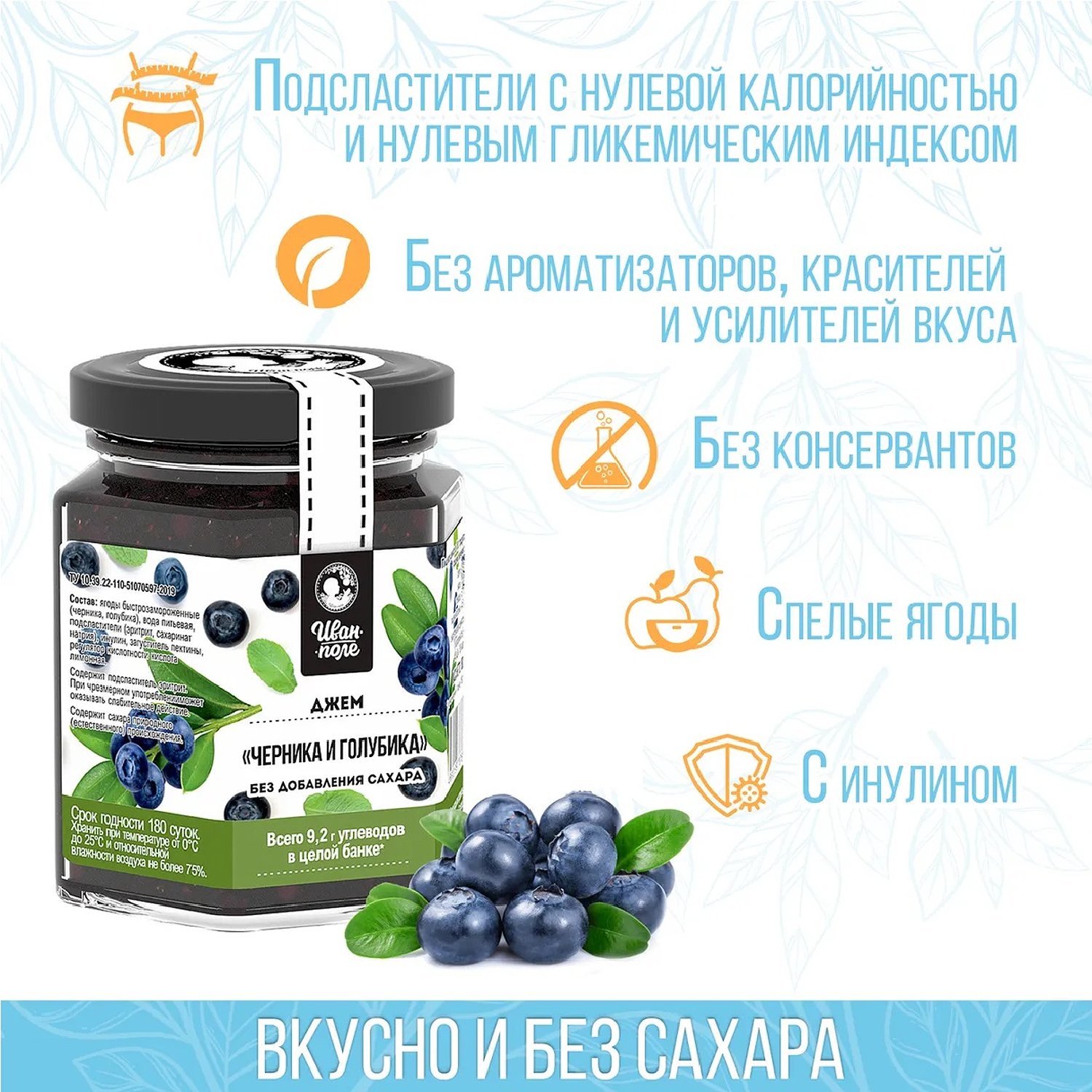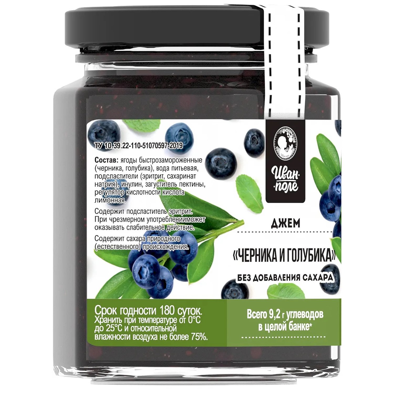 Джем низкокалорийный Иван-поле Черника и голубика без сахара и глютена 180 г 30116011