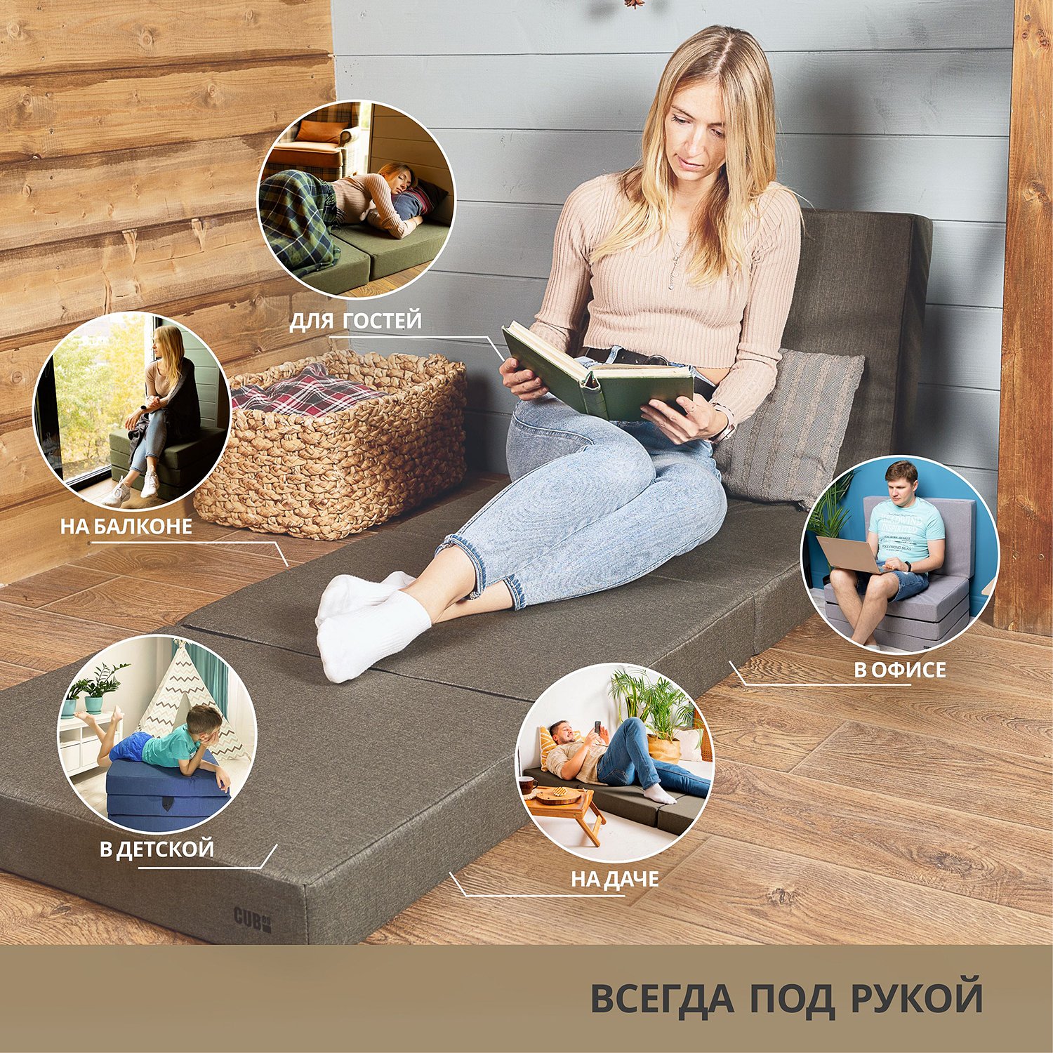 Пуф раскладной CUBes бескаркасный S 4 секции оливковый CUBE09