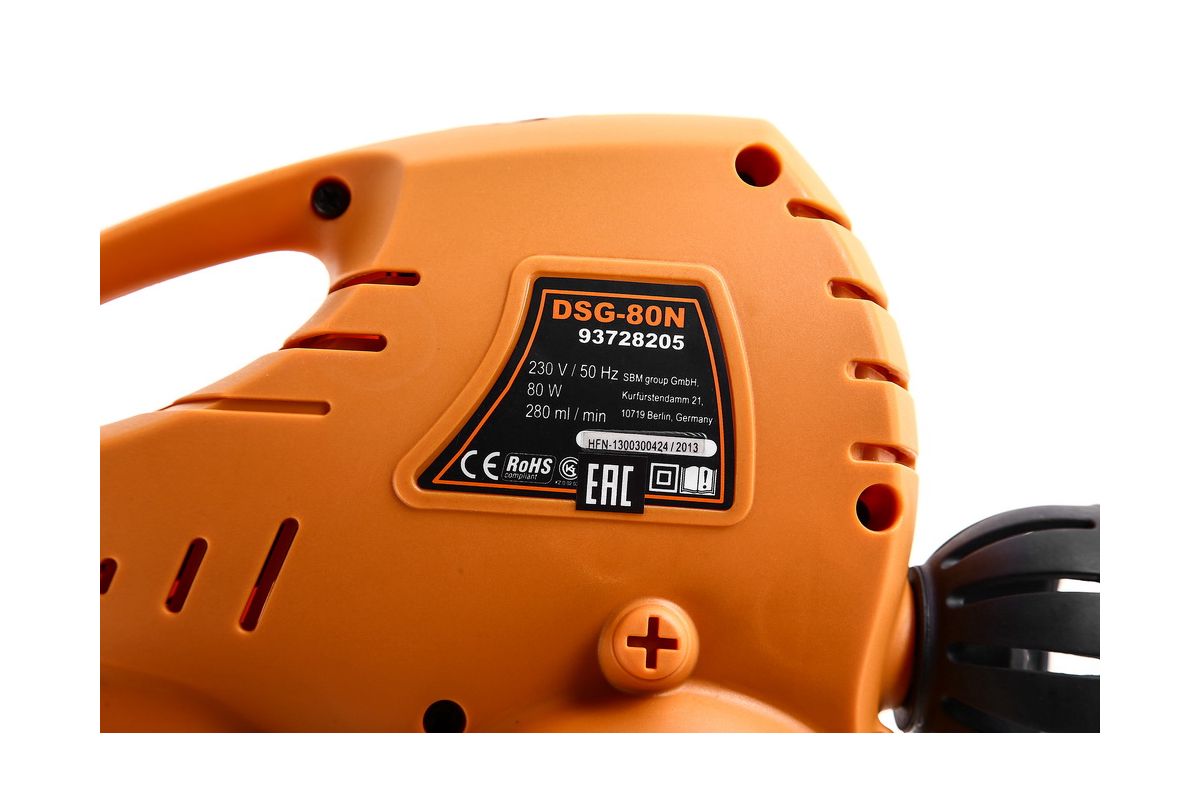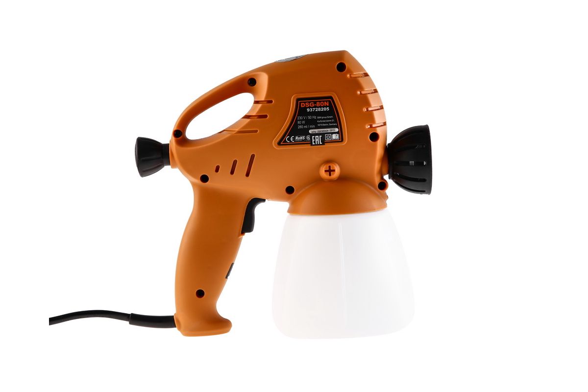 Плунжерный распылитель с удобным регулятором расхода краски. Мощность модели – 80 Ватт; производительность подачи – 250 граммов/минуту; Преимущества: регулировка скорости подачи краски; легкосъемный прозрачный бак на 800 мл.; вискозиметр в комплекте.