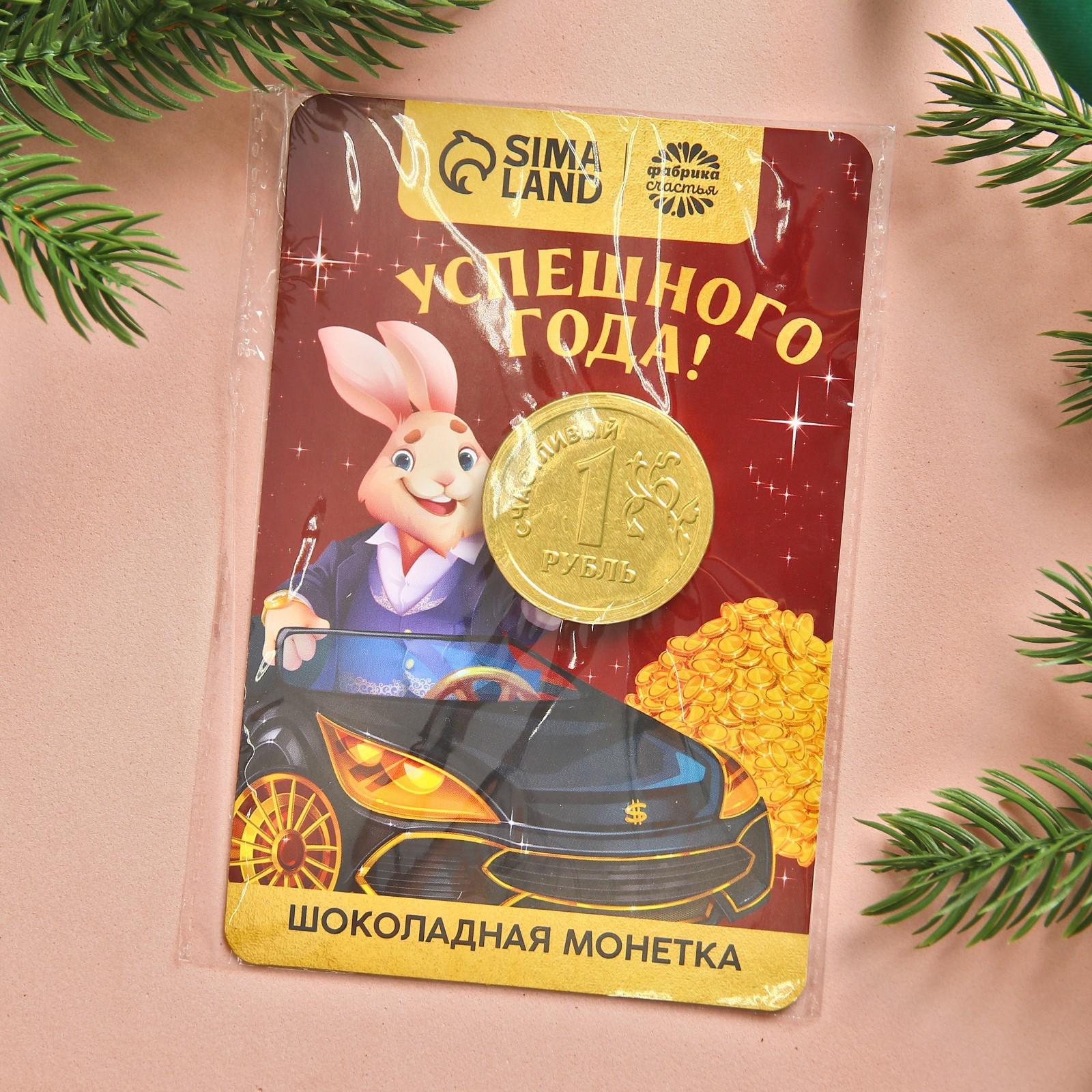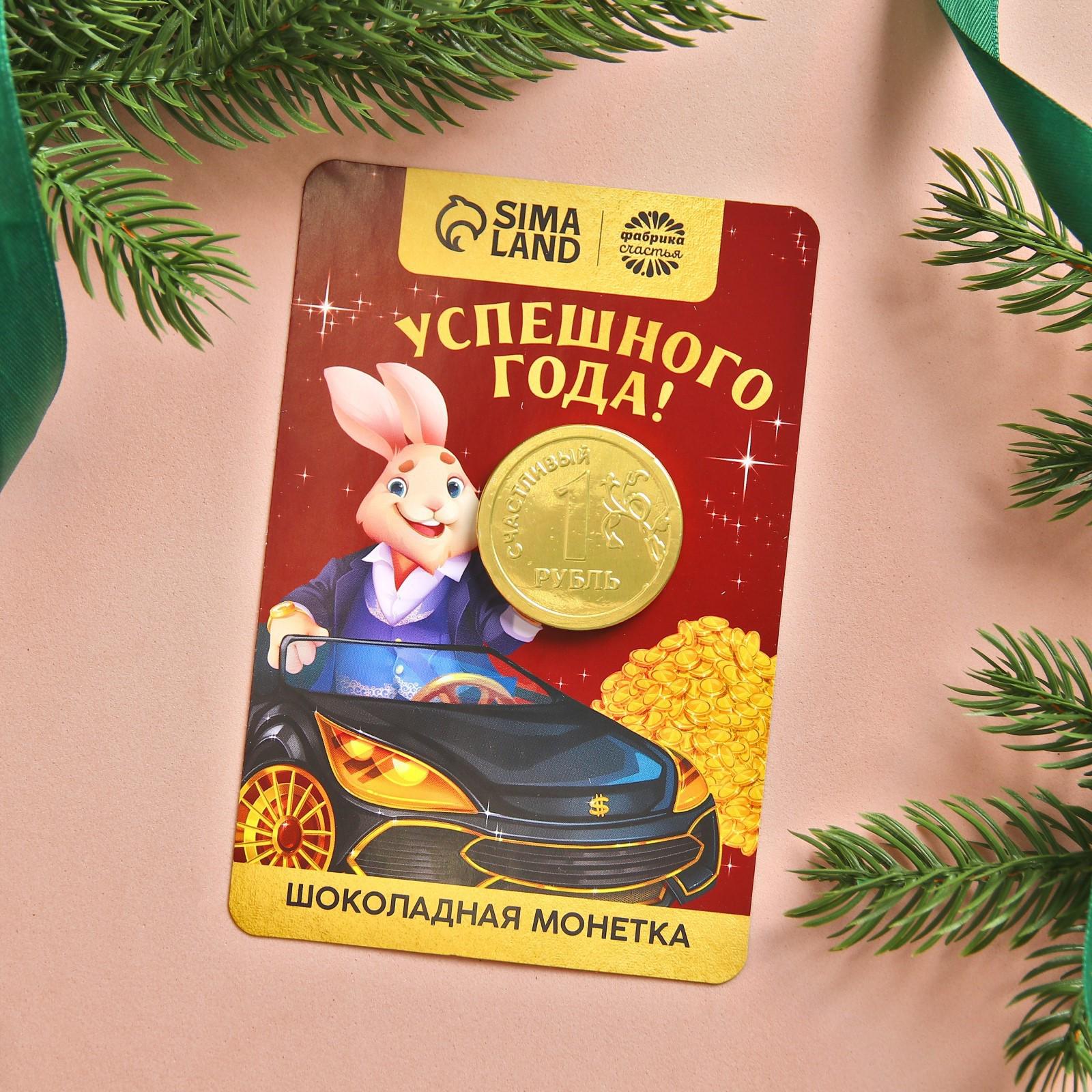 Открытка с шоколадной монетой "Успешного года", 6 г.