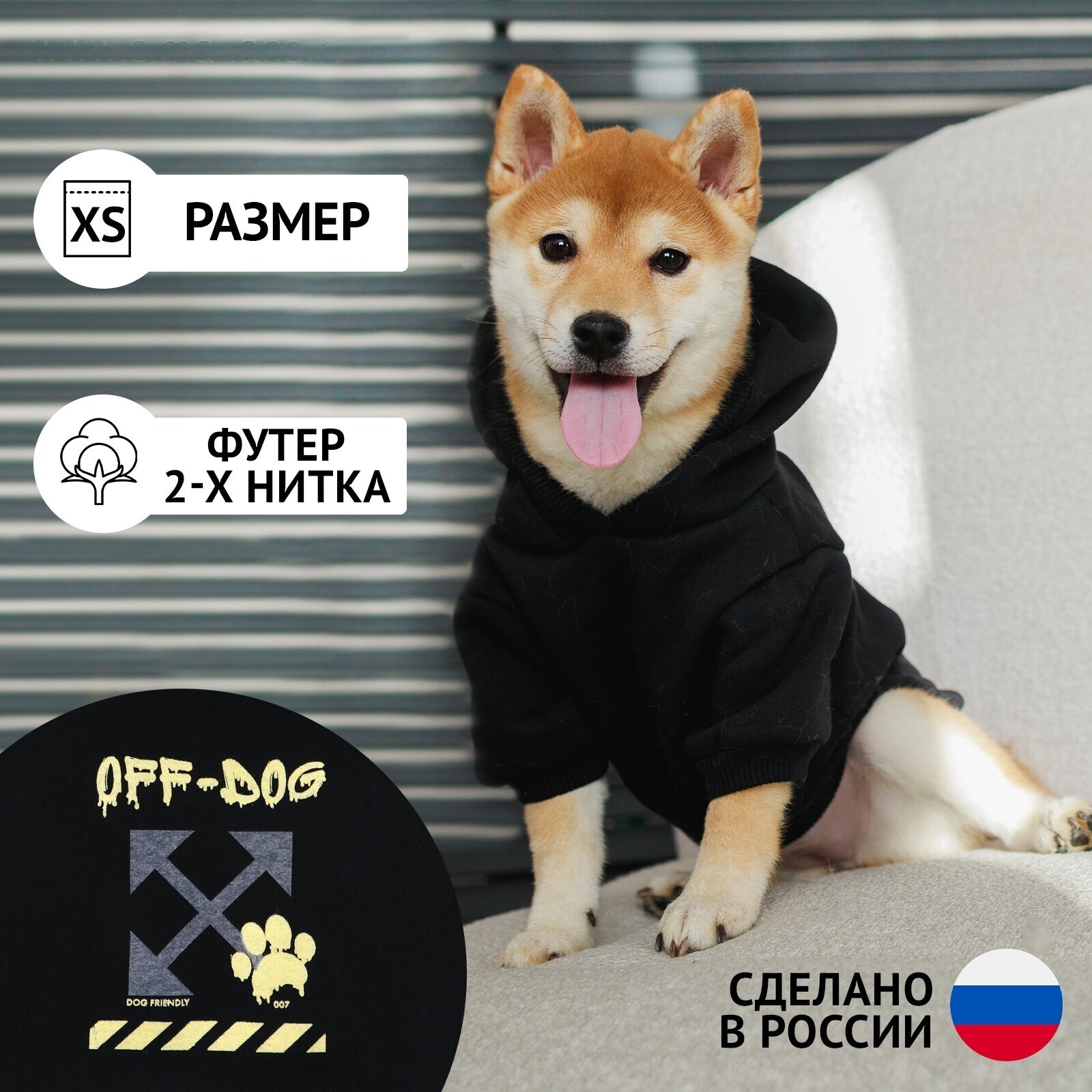 Толстовка Off-Dog для собак (футер с начесом), размер XS (ДС 20, ОШ 24-25, ОГ 32-36), чёрная