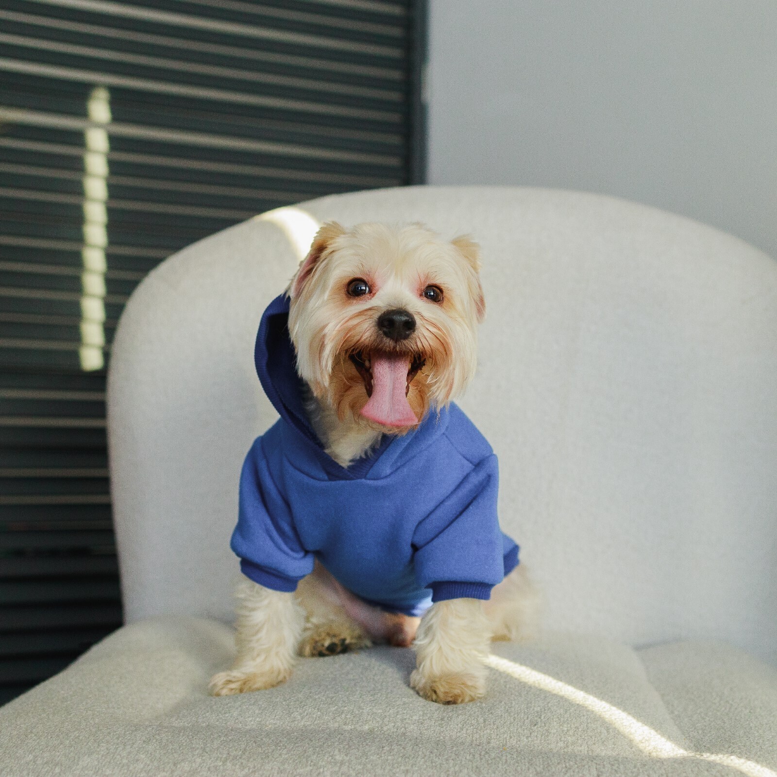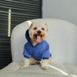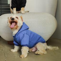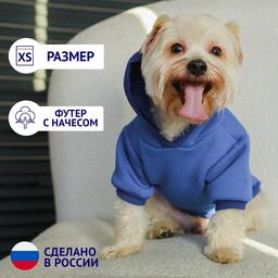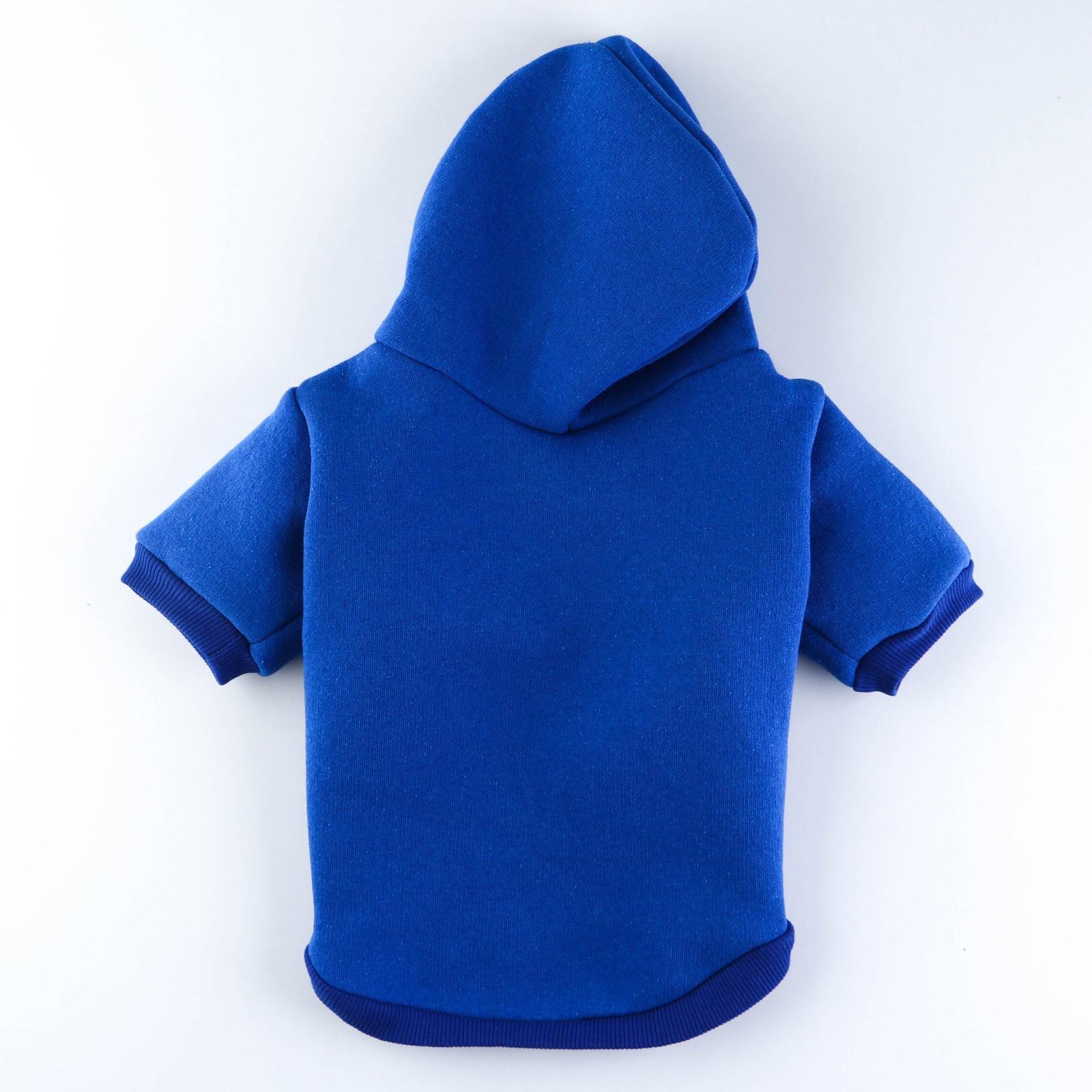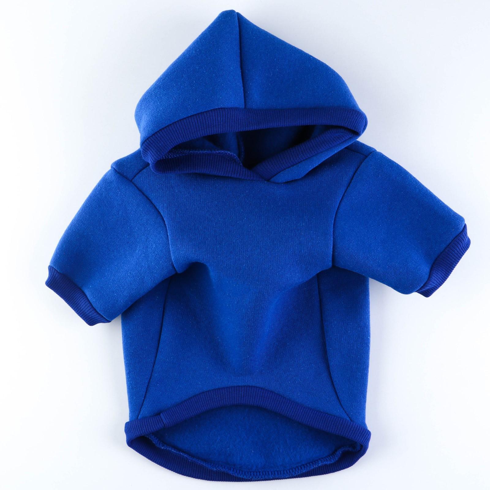 Толстовка однотонная для собак (футер с начесом), размер XS (ДС 20, ОШ 24-25, ОГ 32-36), синяя