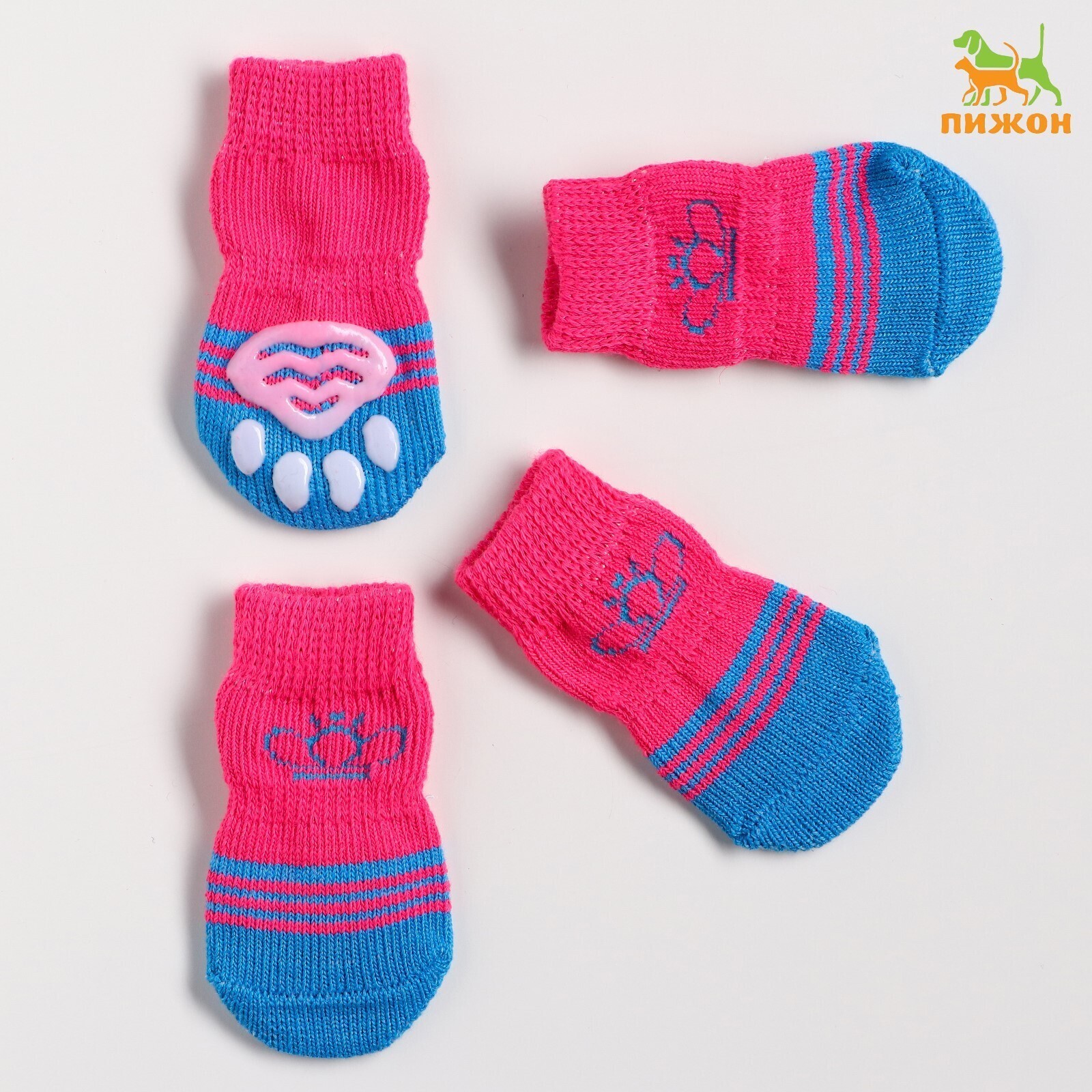 Набор носков (4 шт) для животных, прекрасно подойдут для кошек и собак, маленьких и средних. Носки выполнены из мягкого гипоаллергенного материала, резинка надежно фиксирует их на лапах вашего любимца (не причиняя дискомфорт)не соскальзывают, легко стираются в режиме быстрой стирки, за счёт вставки на подошве предотвращают скольжение. Стильный дизайн понравится вашу питомцу и будет радовать Вас. ВАЖНО: Пожалуйста, измерьте ноги вашего питомца в соответствии с методом, указанным на картинке.