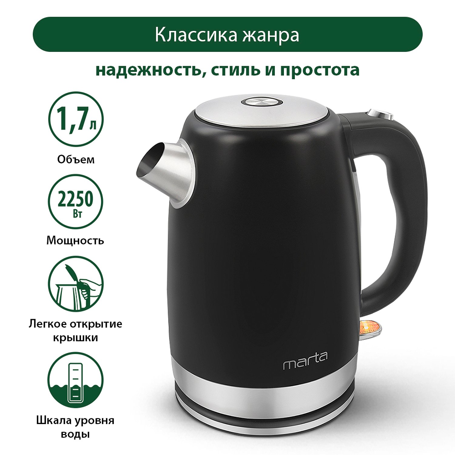 Чайник электрический MARTA MT-4560 металлический Черный жемчуг 36393