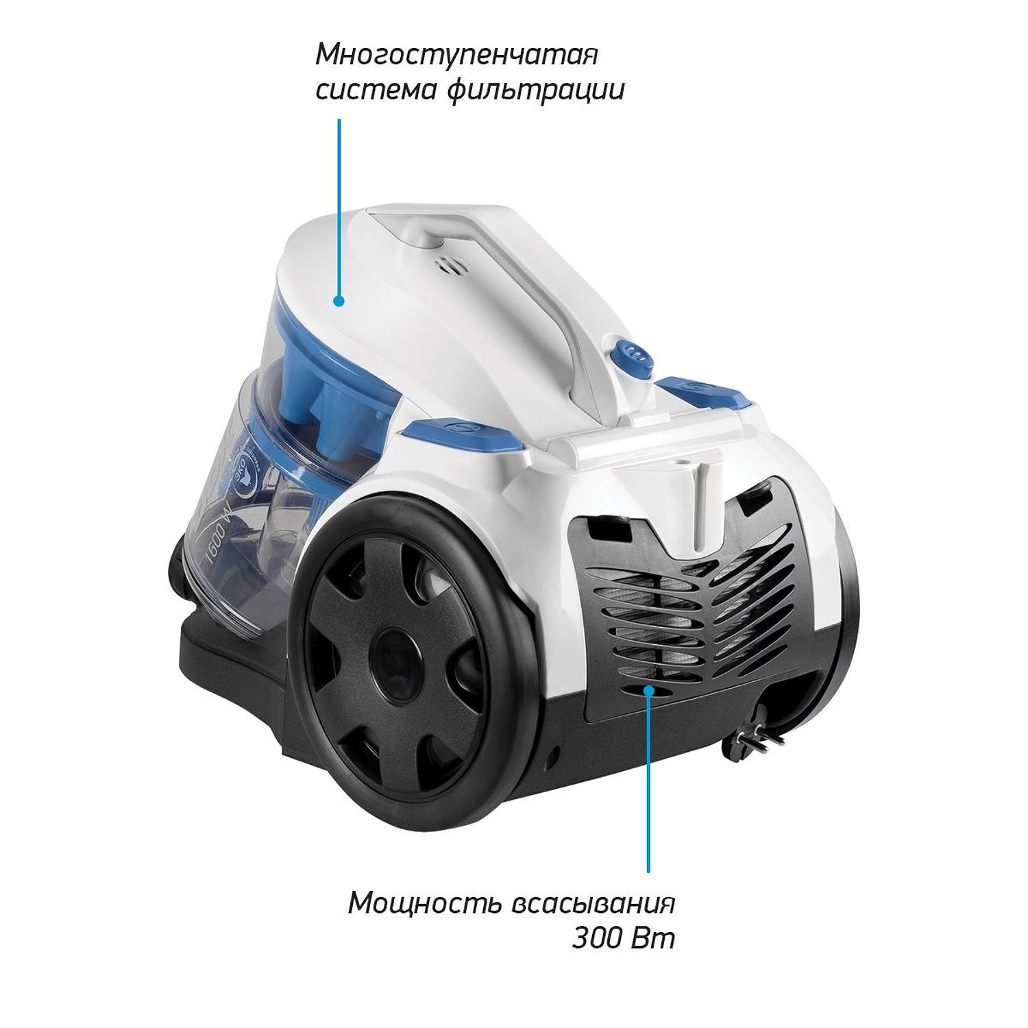 Пылесос циклонный BBK BV1501 белый/синий BV1501 (W/BL)