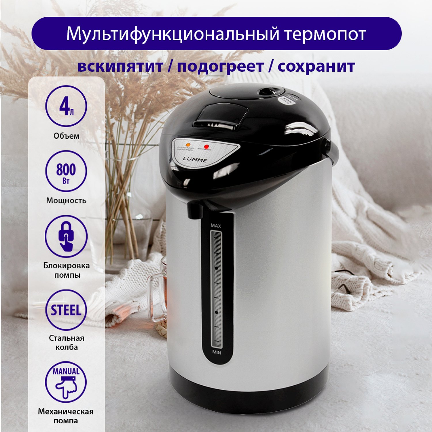 Термопот LUMME LU-3835 черный жемчуг 37690