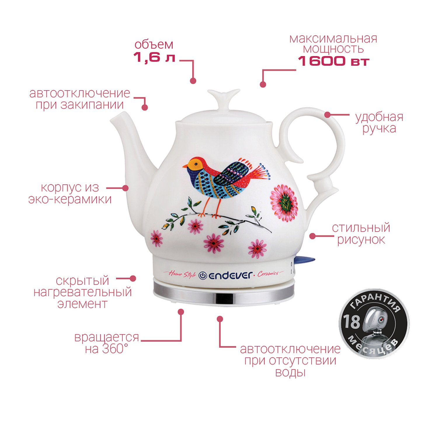 Чайник электрический ENDEVER KR-410C 80464