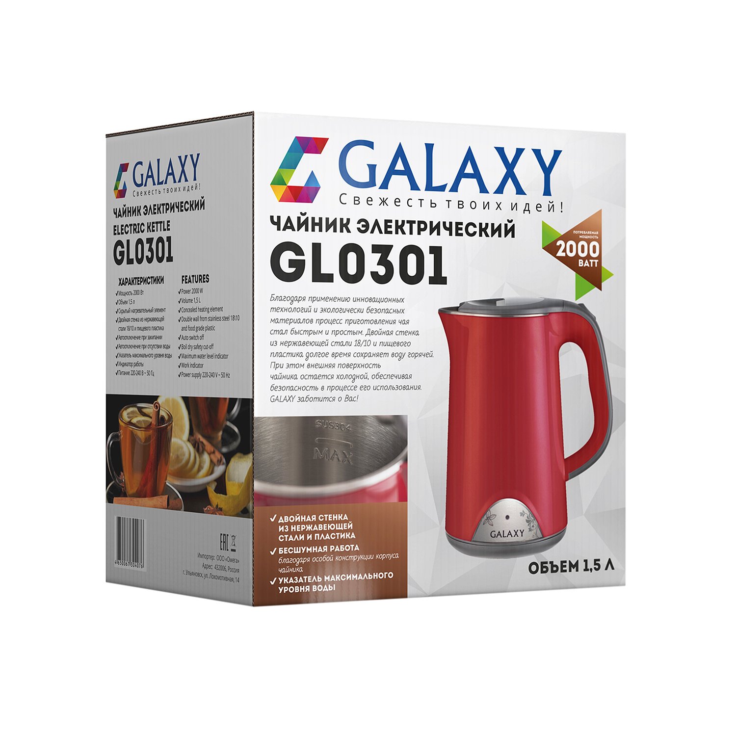 Чайник электрический Galaxy gl0301 гл0301кр