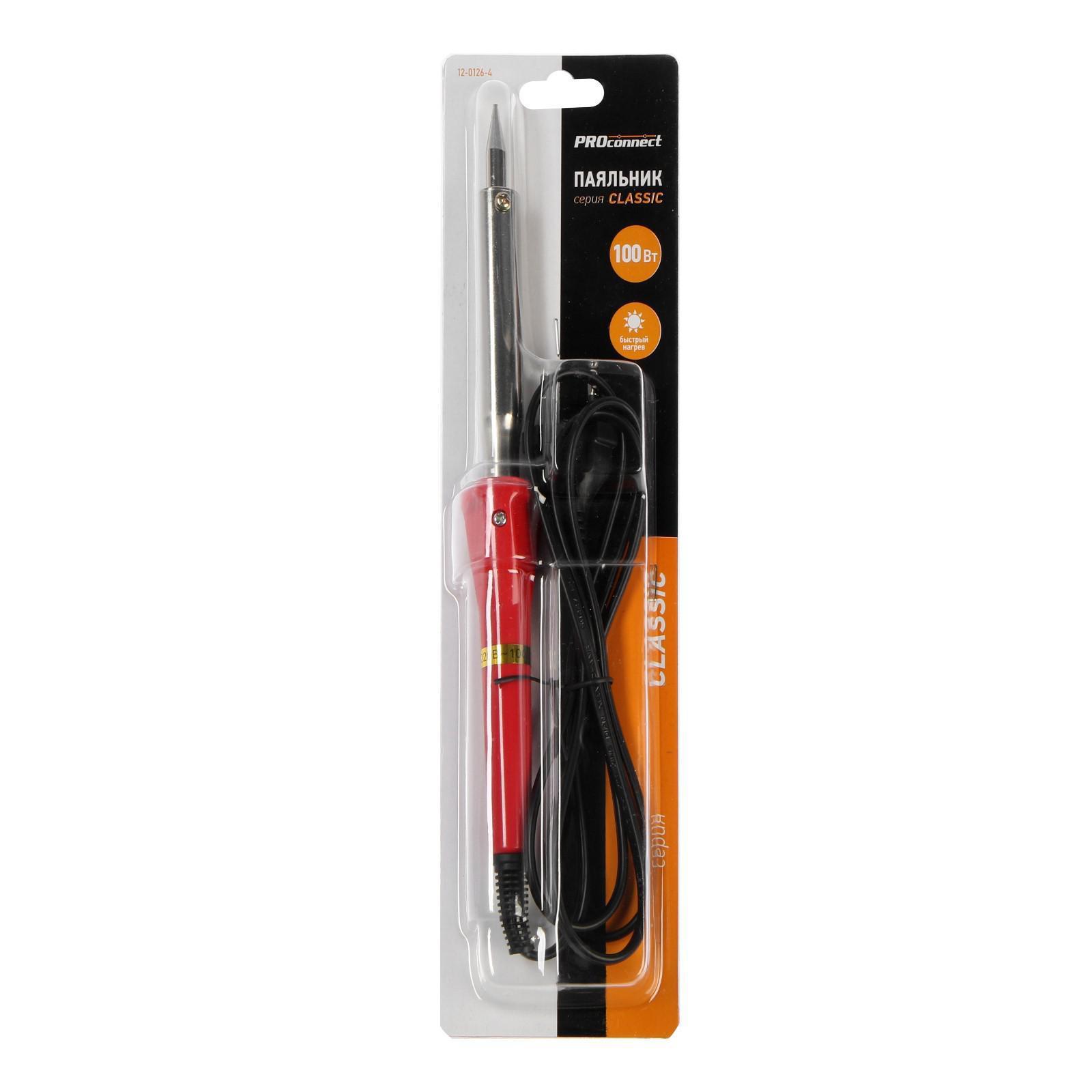 Паяльник PROconnect 12-0126-4, долговечное жало, 100 Вт, 220 В, хромированная поверхность
