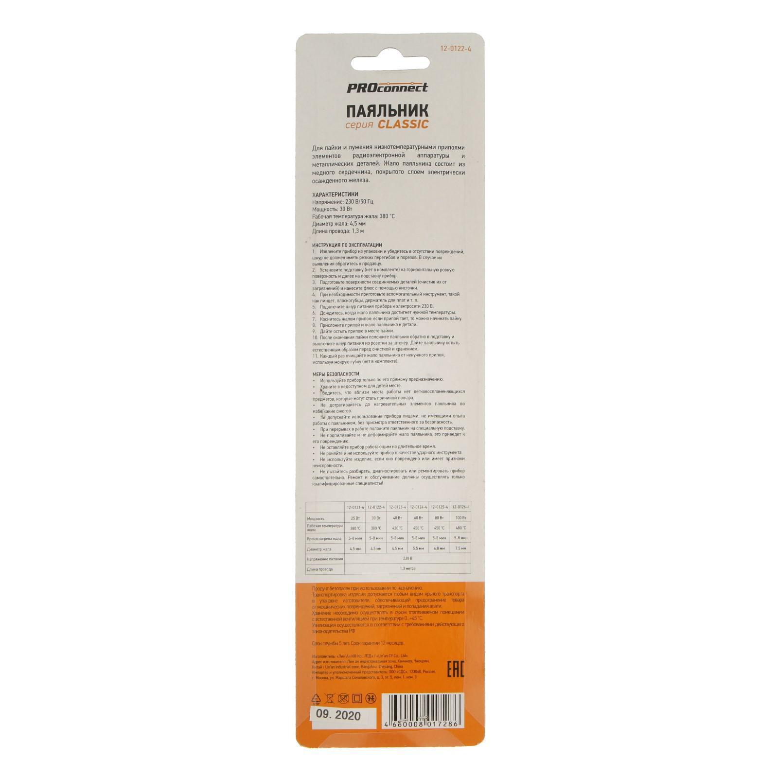Паяльник PROconnect 12-0122-4, долговечное жало, 30 Вт, 220 В, 360 °С, жало 4.5 мм