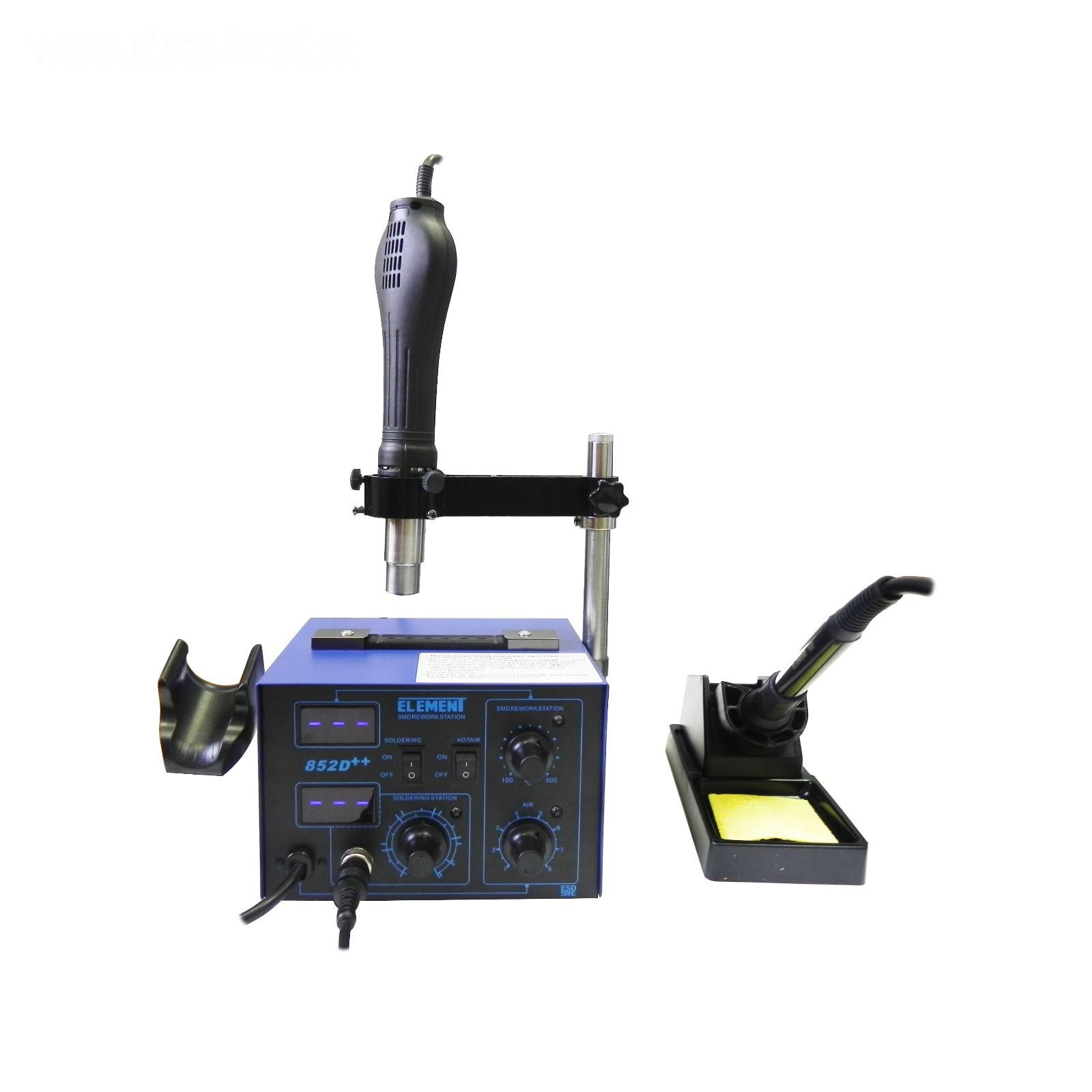 Паяльная станция ELEMENT 852D++, вентиляторная, цифровая, 700 Вт, 100-500 °С, держатель фена