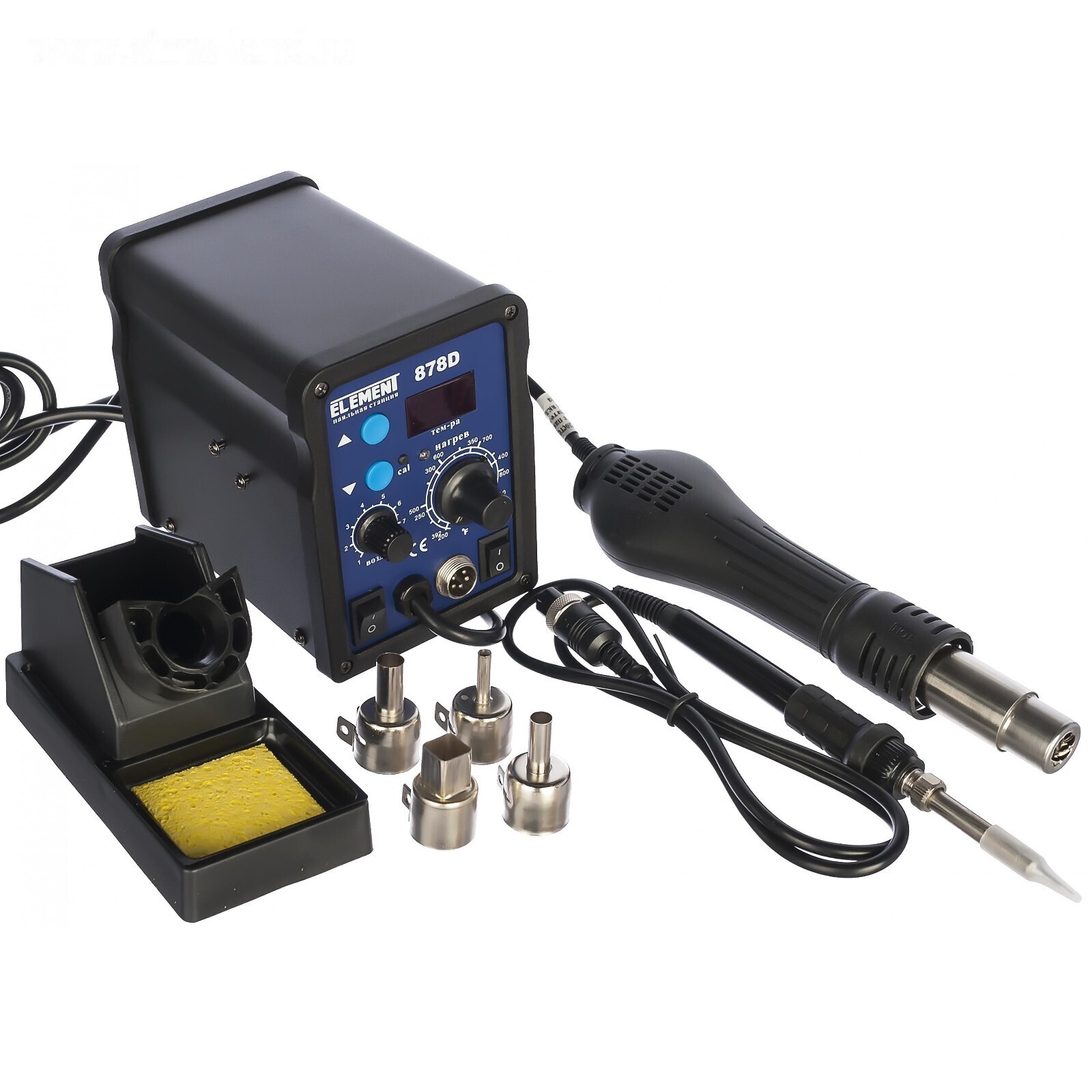Паяльная станция ELEMENT 878D, вентиляторная, цифровая, 700 Вт, 100-480 °С, фен/паяльник