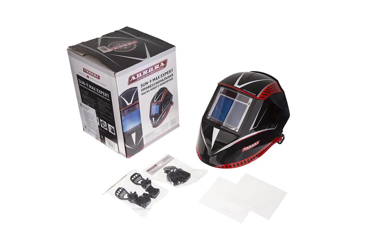 SUN-9 MAX EXPERT – новинка 2017-го модельного года в ассортименте AURORA. Новая концепция блока светофильтра - EXPERT - отличается от предшественников улучшенными характеристиками оптического класса 1/1/1/1 по рассеиванию света, однородности затемнения и угловой зависимости; уникальным диапазоном степени затемнения от 3DIN и новой панелью управления на внутренней стороне щитка. Съёмный аккумулятор с продолжительным сроком службы, может быть заменён сварщиком самостоятельно, в случае необходимости. Щиток может быть дооснащён увеличительными стёклами. Маска SUN-9 может использовться вместе с респиратором и установливаться на строительную каску.