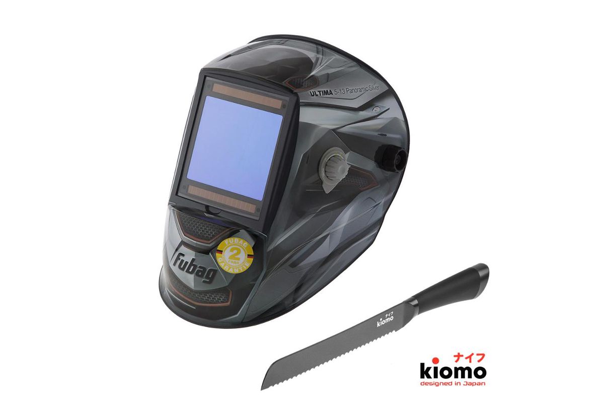 В состав набора входят: Сварочная маска FUBAG ULTIMA 5 – 13 Panoramic Silver ''хамелеон'' зона обзора 100х93мм, Нож кухонный KIOMO 32-18 для хлеба 20 см