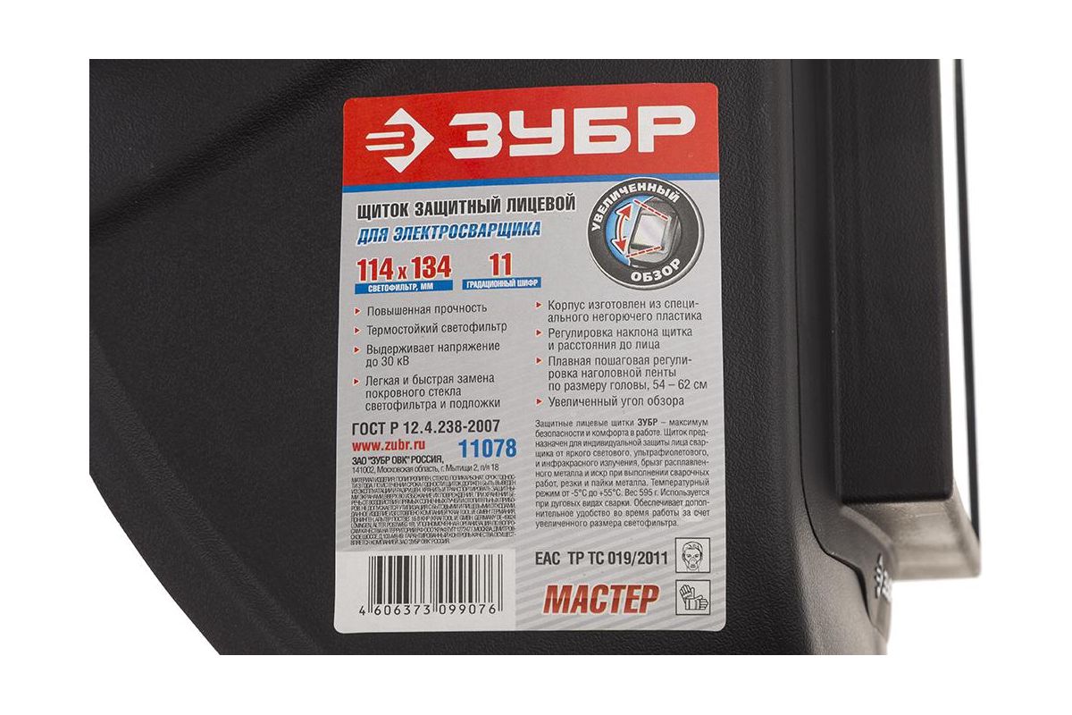 Маска ЗУБР 11078 сварщика мастер стекло 114х134мм