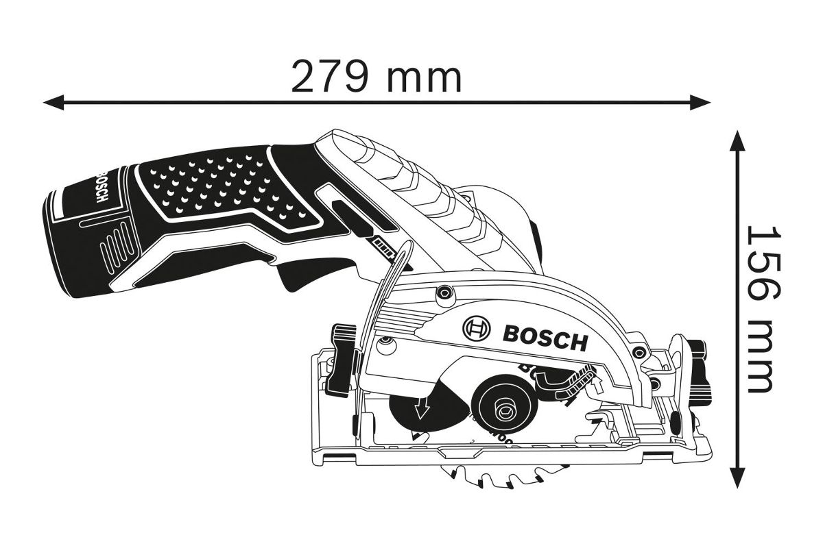 GKS 12V-26 Bosch Professional - это сверхкомпактная аккумуляторная дисковая пила для выполнения продольных и поперечных прямых резов и резов под углом в древесине.