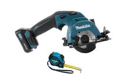 В состав набора входят: Пила циркулярная MAKITA HS301DWME 10.8В 2х4Ач Li-ion 1500об\м диск-ф85мм рез-25.5мм 1.6кг чем, Рулетка MAKITA PGC-80520