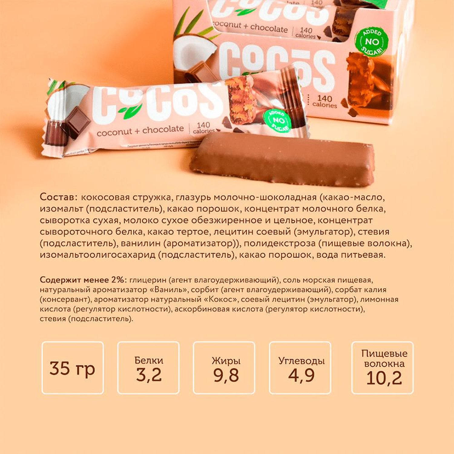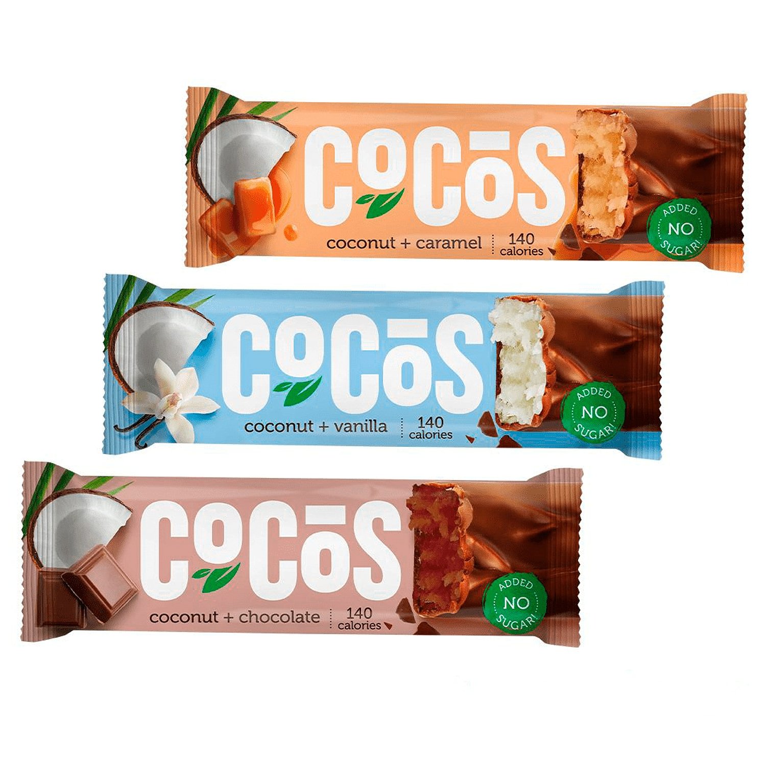 Протеиновые батончики СOCOS Fitnesshock Ассорти ванильный карамельный шоколадный кокос 12 шт 35гр НФ-00002964