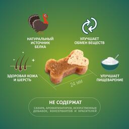 Мясные косточки с индейкой и творогом содержат L-карнитин, который способствует нормализации процессов обмена веществ и повышению выносливости при интенсивных физических нагрузках. Идеально подходит в качестве поощрения при обучении, дрессировке или просто за хорошее поведение.