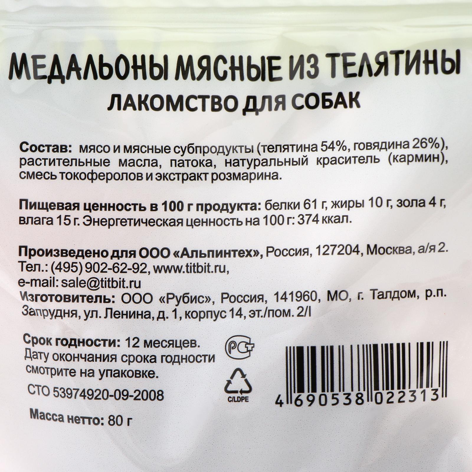 Лакомство TiTBiT "Меню от шефа" для собак, медальоны мясные, телятина, 80 г