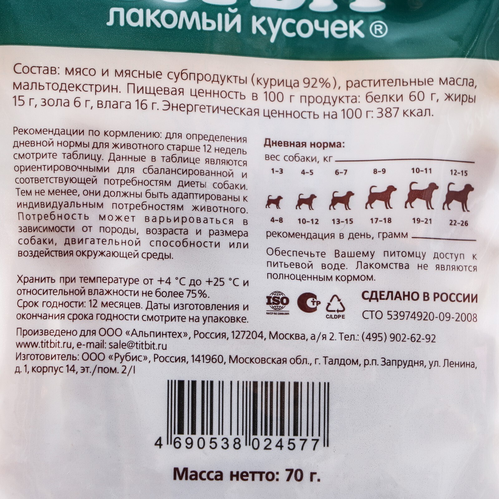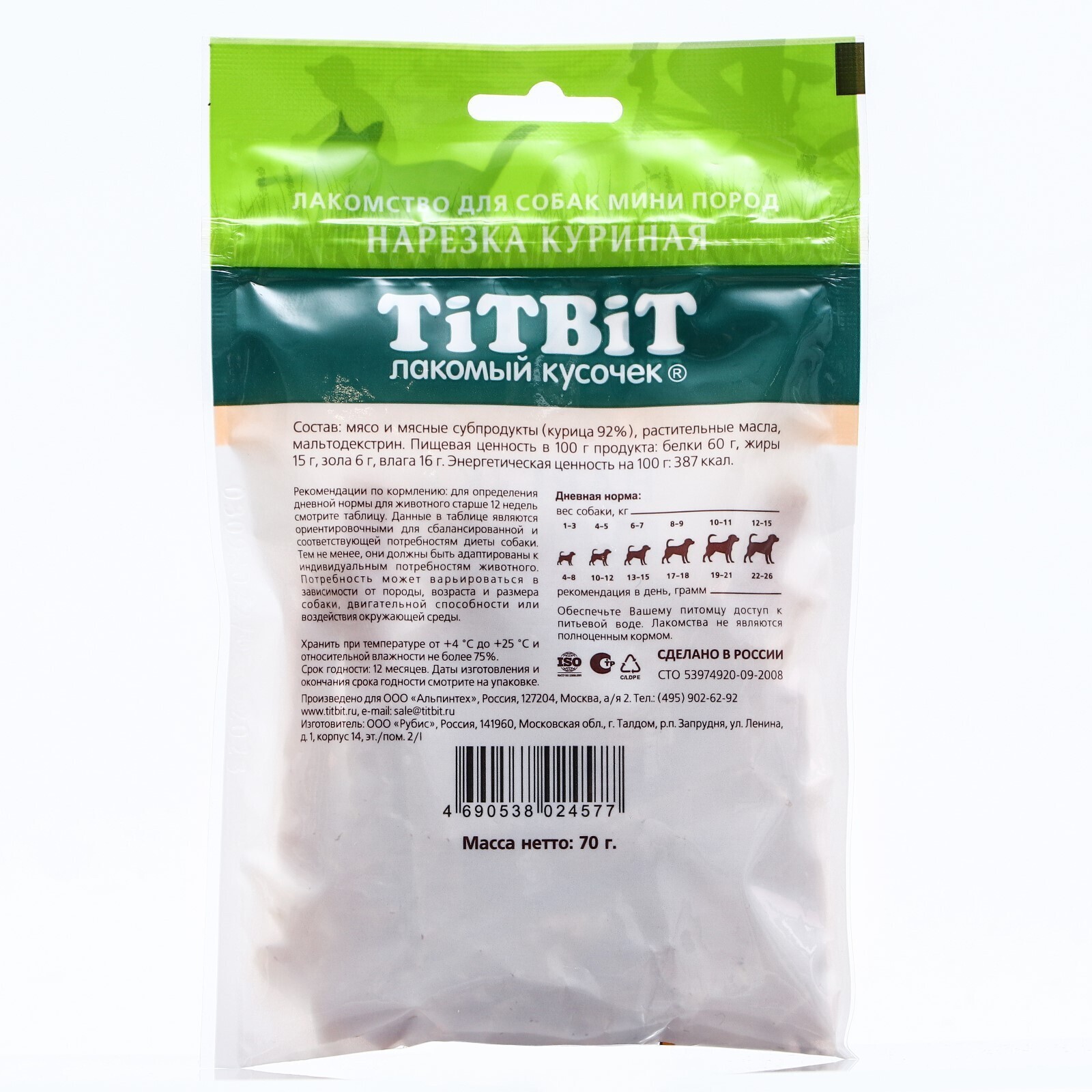 Лакомство для собак мини-пород Titbit нарезка куриная 70 г
