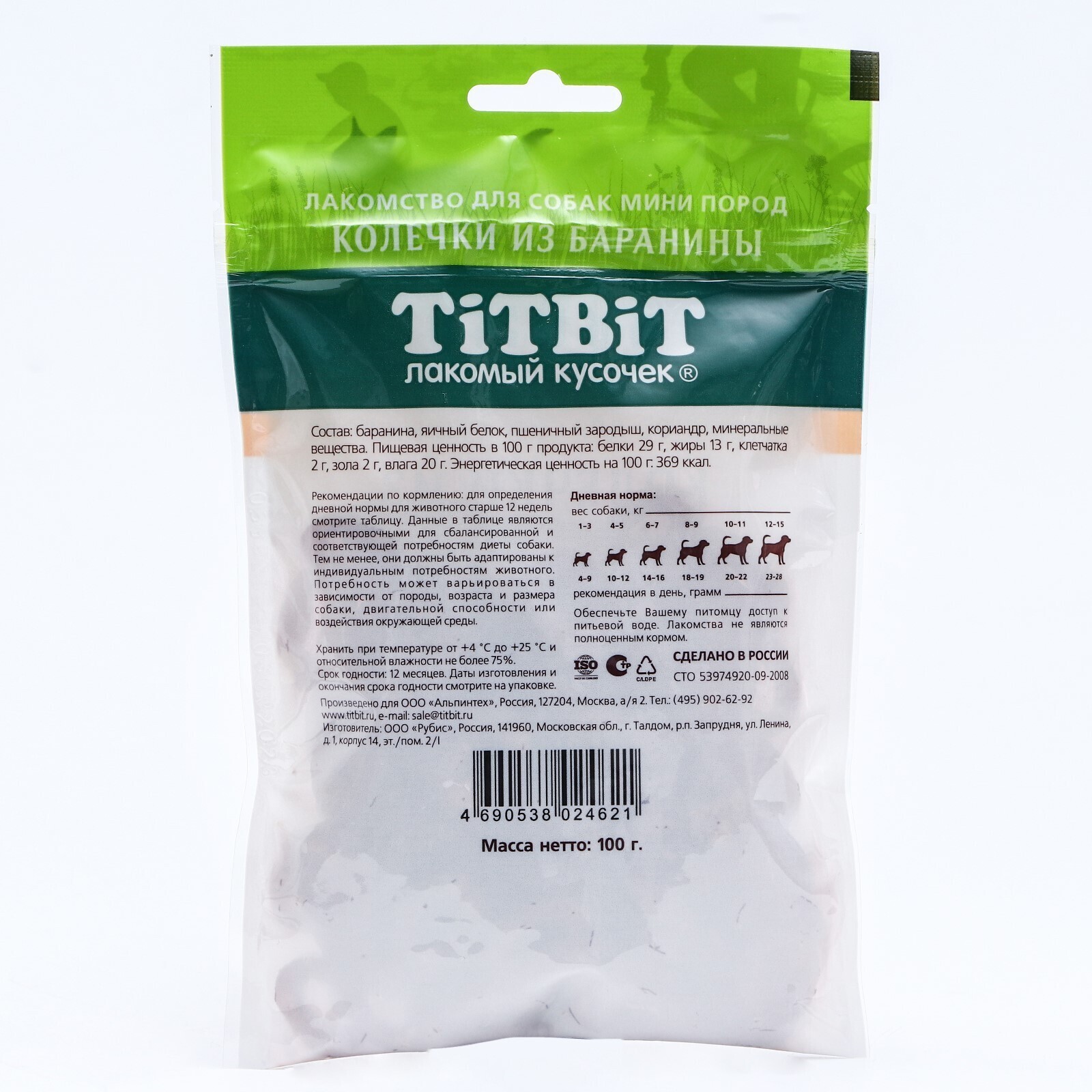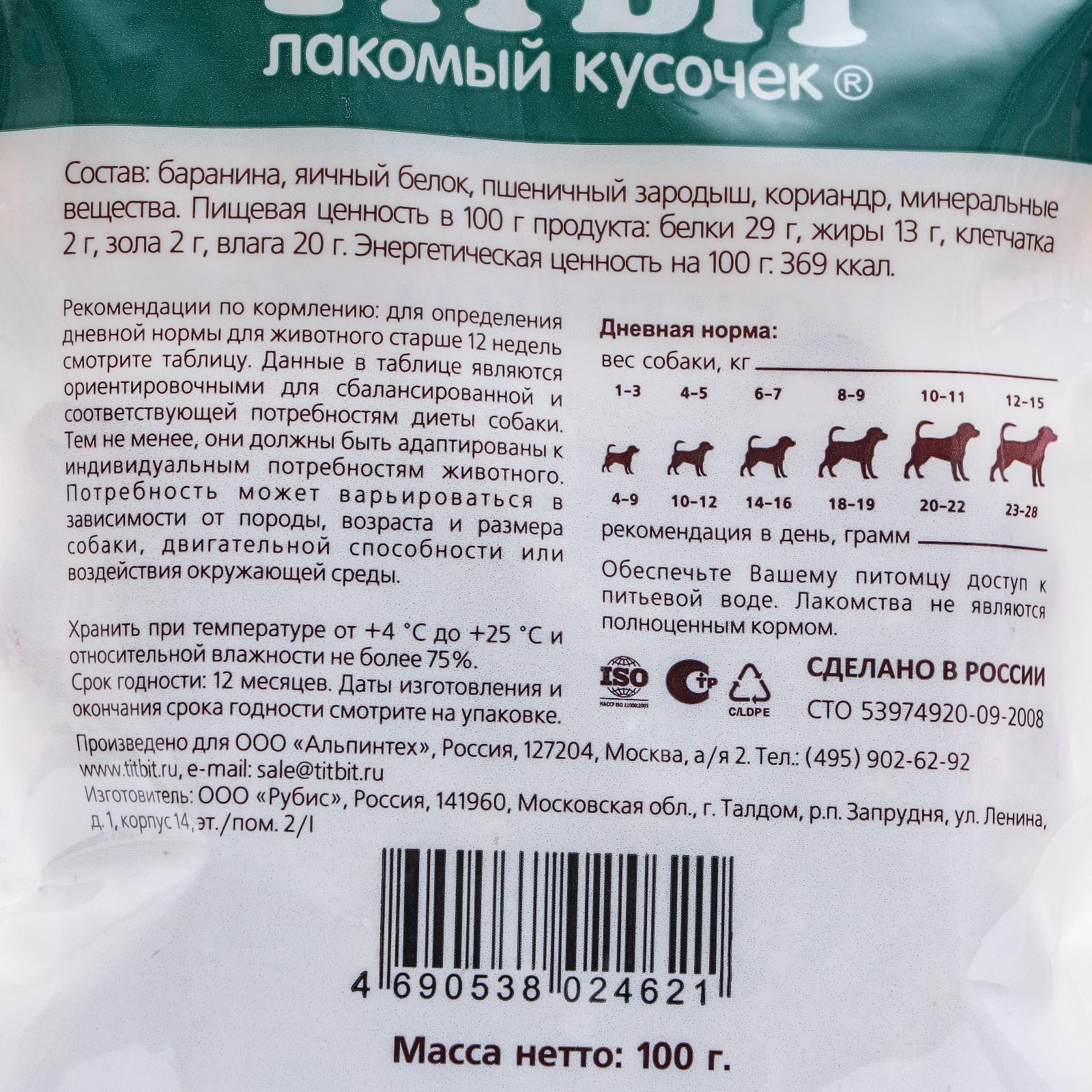 Колечки из баранины Titbit для собак мини пород 100 г